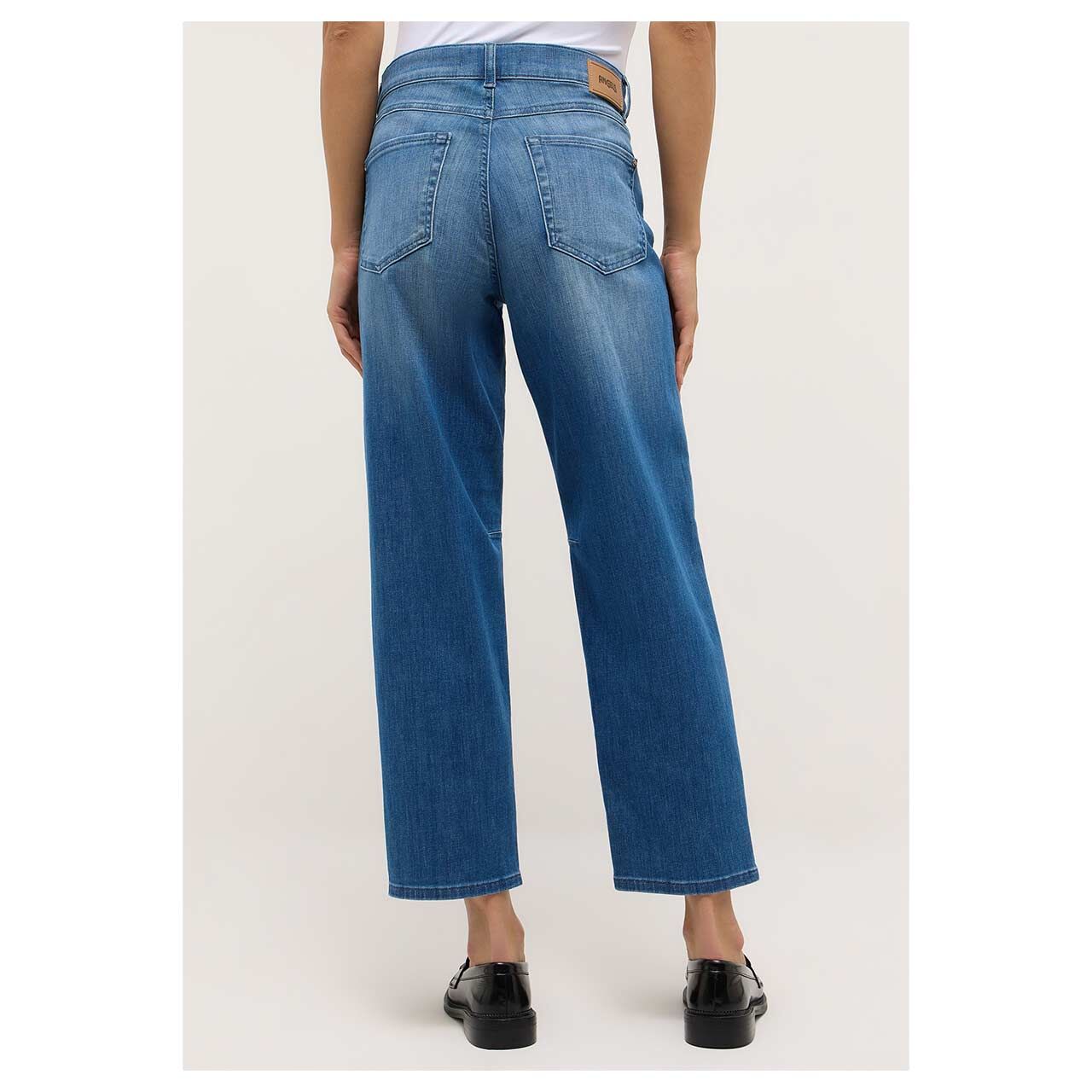 Stretch Damen Ankle Jeans Evy Barrel in Blau angewaschen