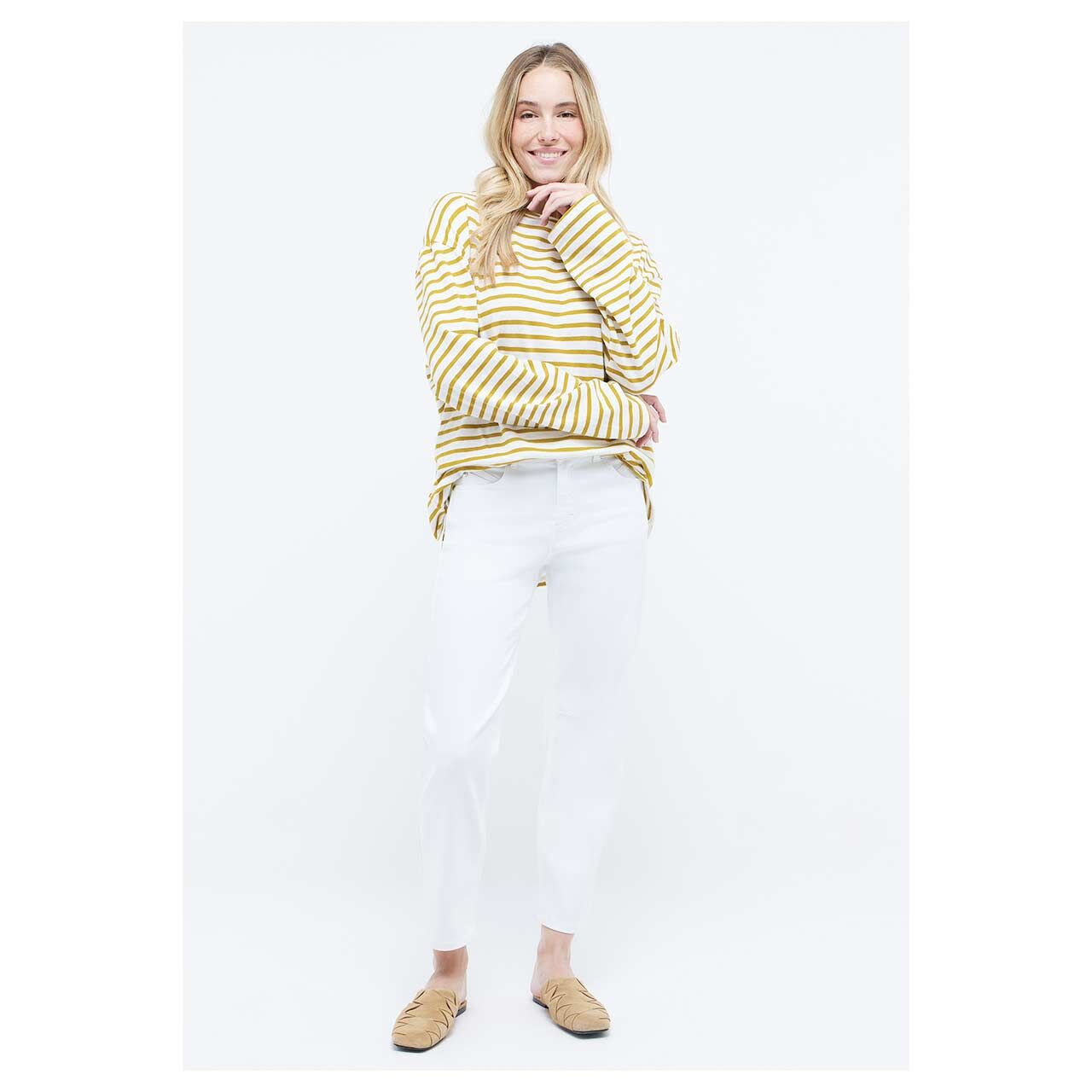 Locker, modern und mit klarer Linie zeigt sich die Angels Jeans Evy. Der markante Schnitt verleiht dem Look eine entspannte Weite, ohne an Form zu verlieren, und sorgt für ein angenehmes Tragegefühl im Alltag. Das helle Weiß bringt Frische ins Outfit und eröffnet viele Stylingmöglichkeiten.