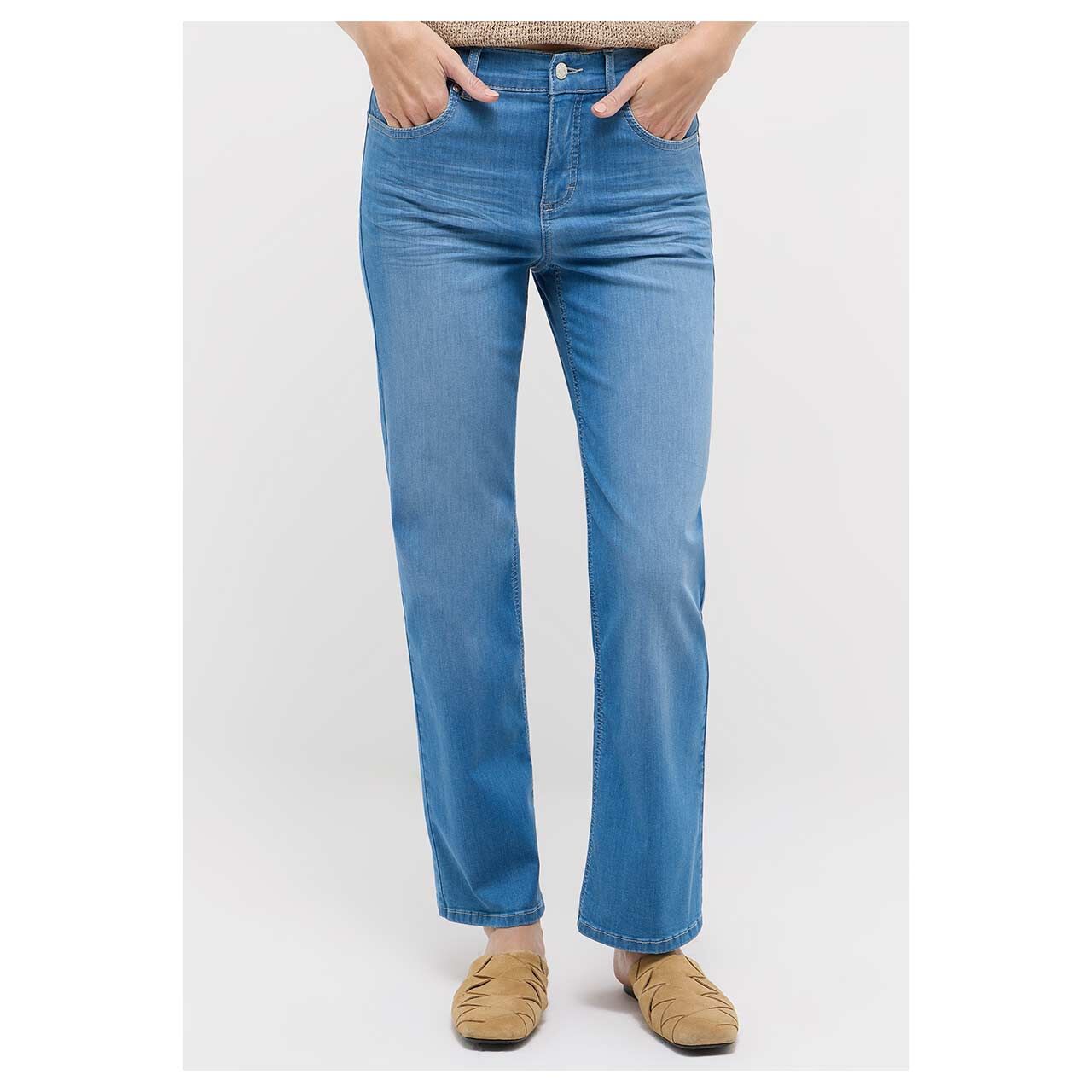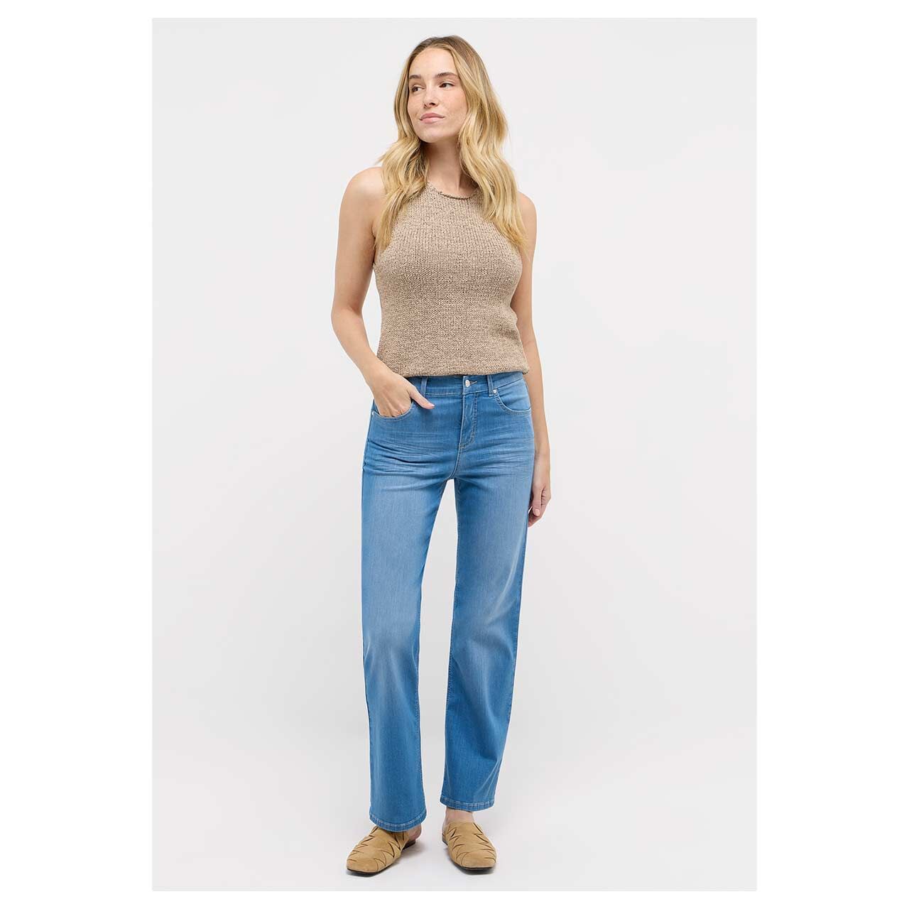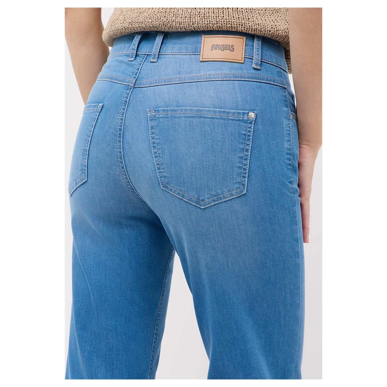 Schön weit, schön lässig, schön bequem! So präsentiert sich die Angels Lara. Die Damenjeans in Hellblau mit hellen Nähten und eingearbeiteten Sitzfalten ist eine treue und stilvolle Begleiterin für Alltag und Freizeit.