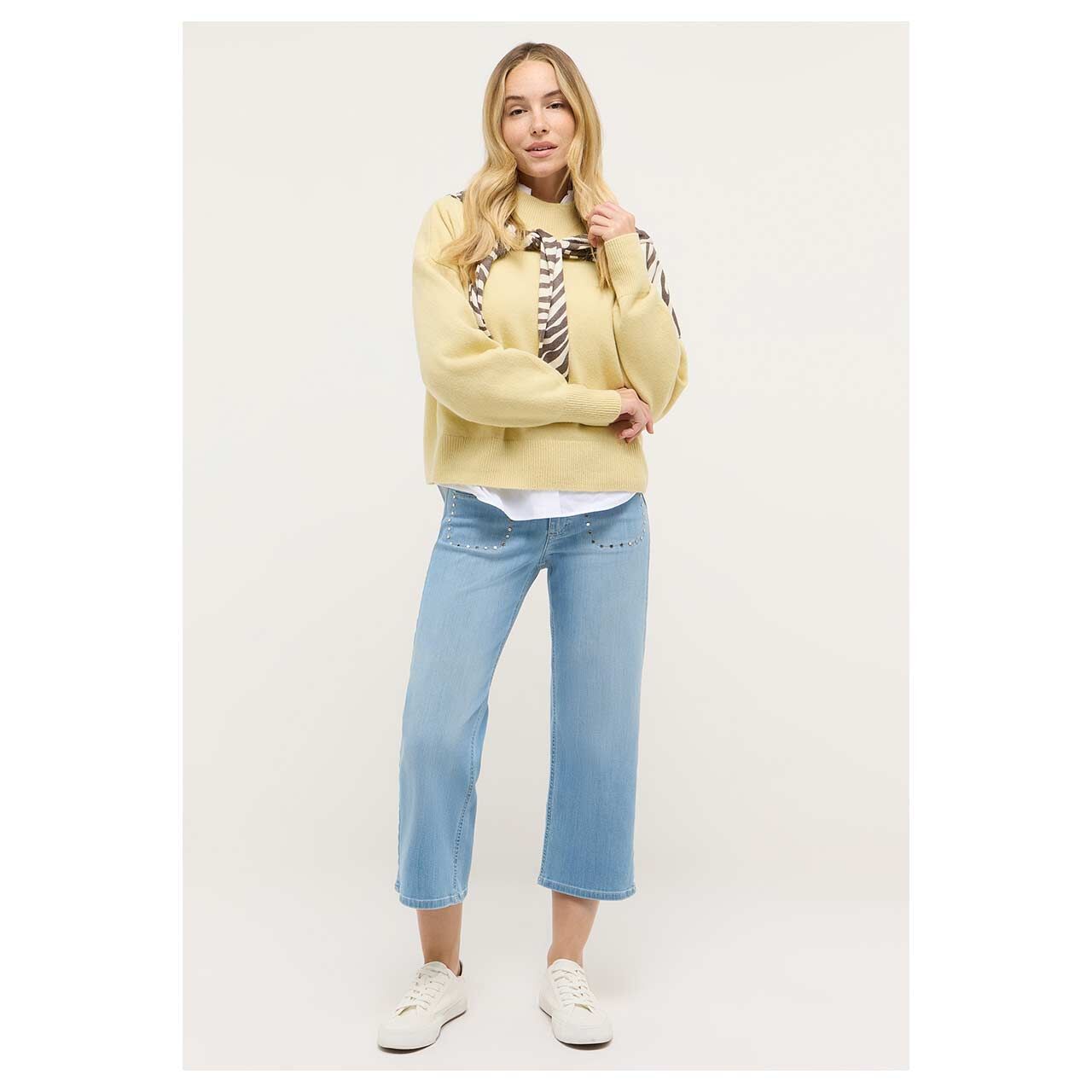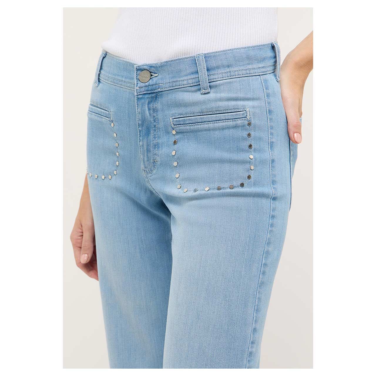 Super leicht und mit liebevollen Details: Die Angels Linn Trendy begeistert in hellblauer, dezent angewaschener Optik und bringt frische Leichtigkeit in Ihren Look. Der stretchige Denim sorgt für ein angenehmes Tragegefühl und passt sich komfortabel an. Besonderer Blickfang sind die aufgesetzten Fronttaschen mit dekorativen Nieten, die dem Modell eine leicht verspielte Note verleihen.