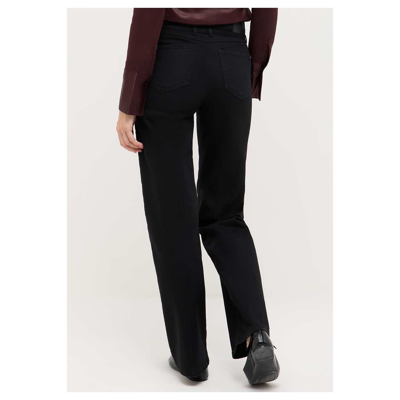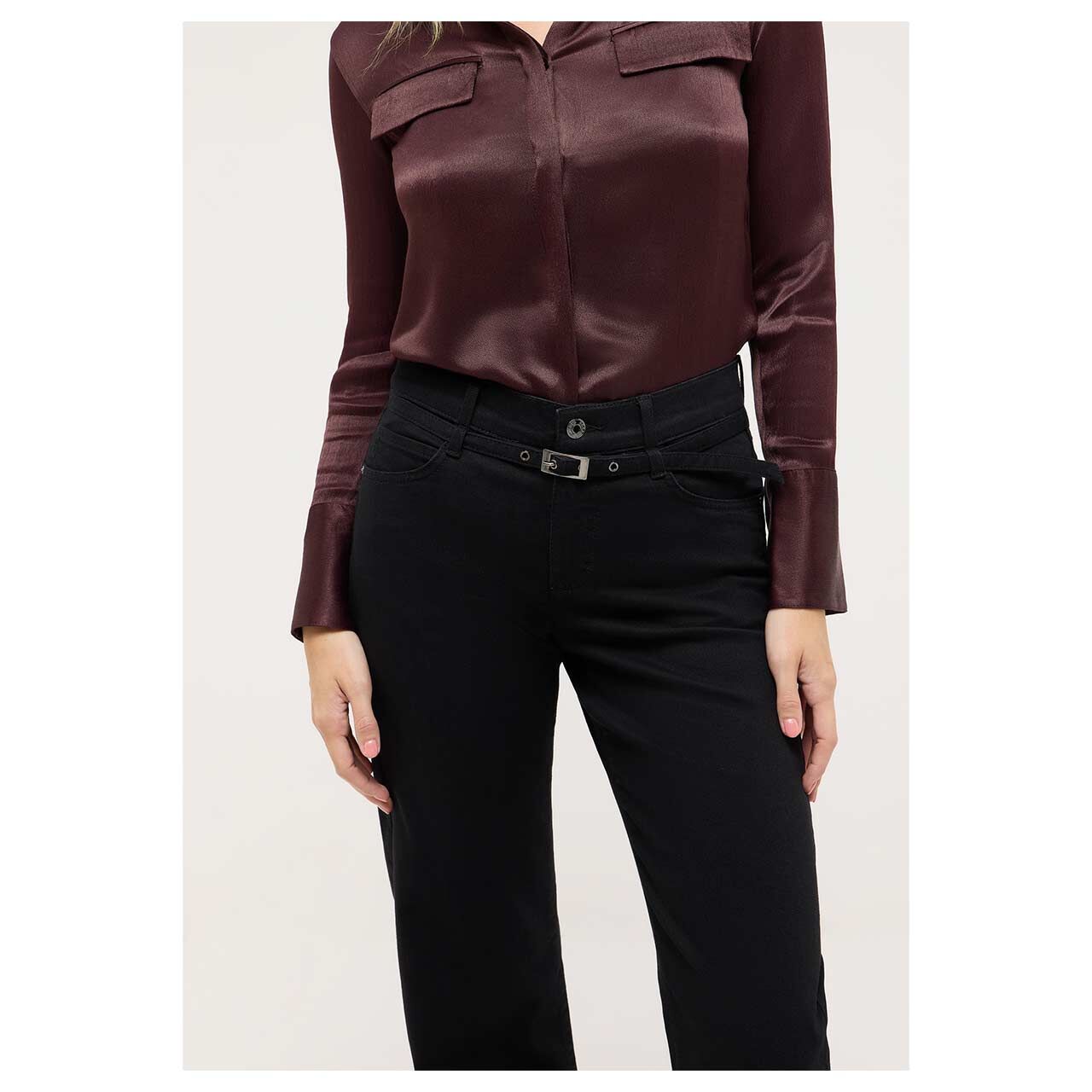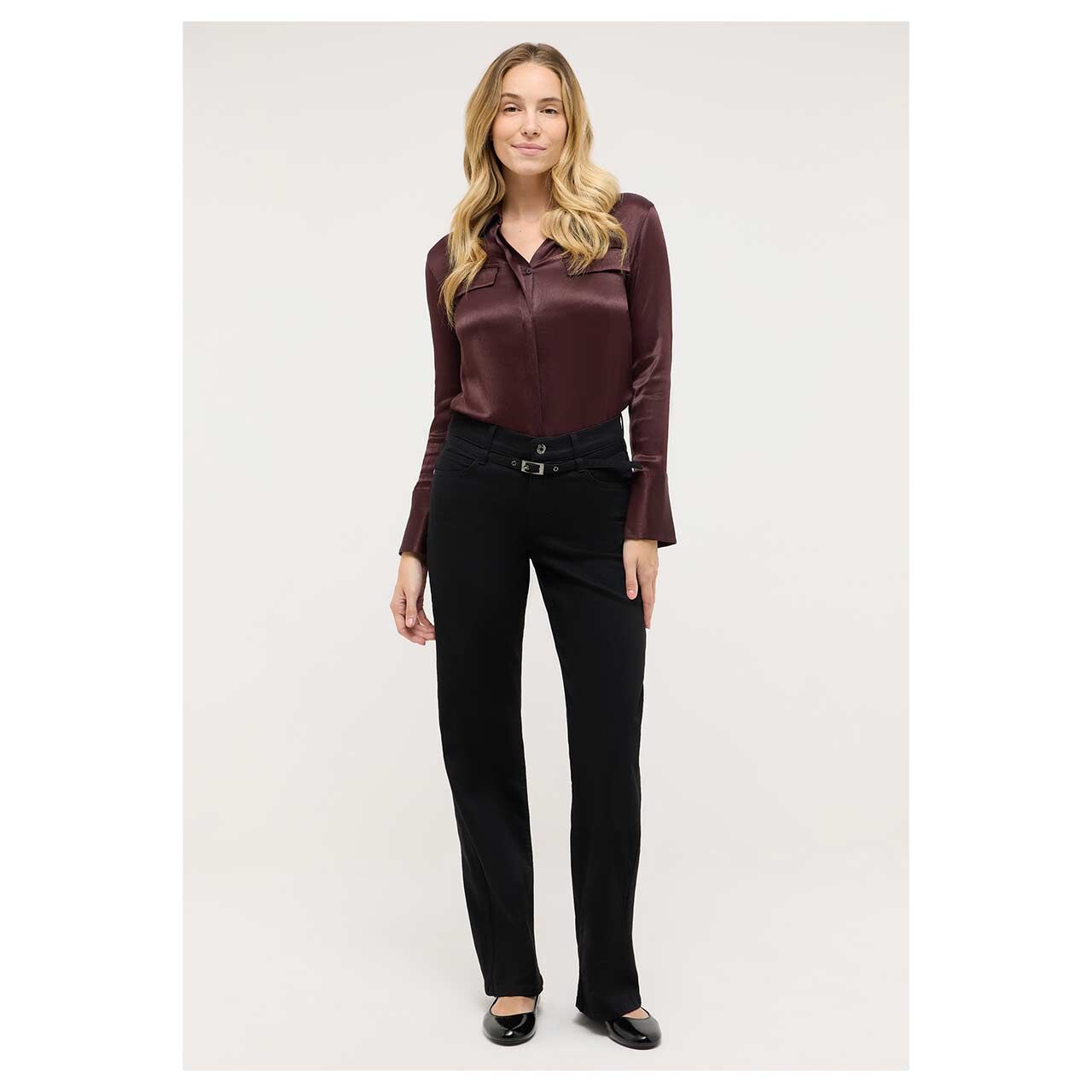 Schwarz trifft Extravaganz! Mit der Angels Jeans Liz haben Sie das perfekte Basic mit besonderem Detail gefunden. Der Ton-in-Ton-Gürtel verläuft in zusätzlichen Schlaufen und macht die Damenjeans zu einem echten Hingucker. Ihr weiter Schnitt sitzt bequem und die elegante Bügelfalte streckt optisch das Bein.