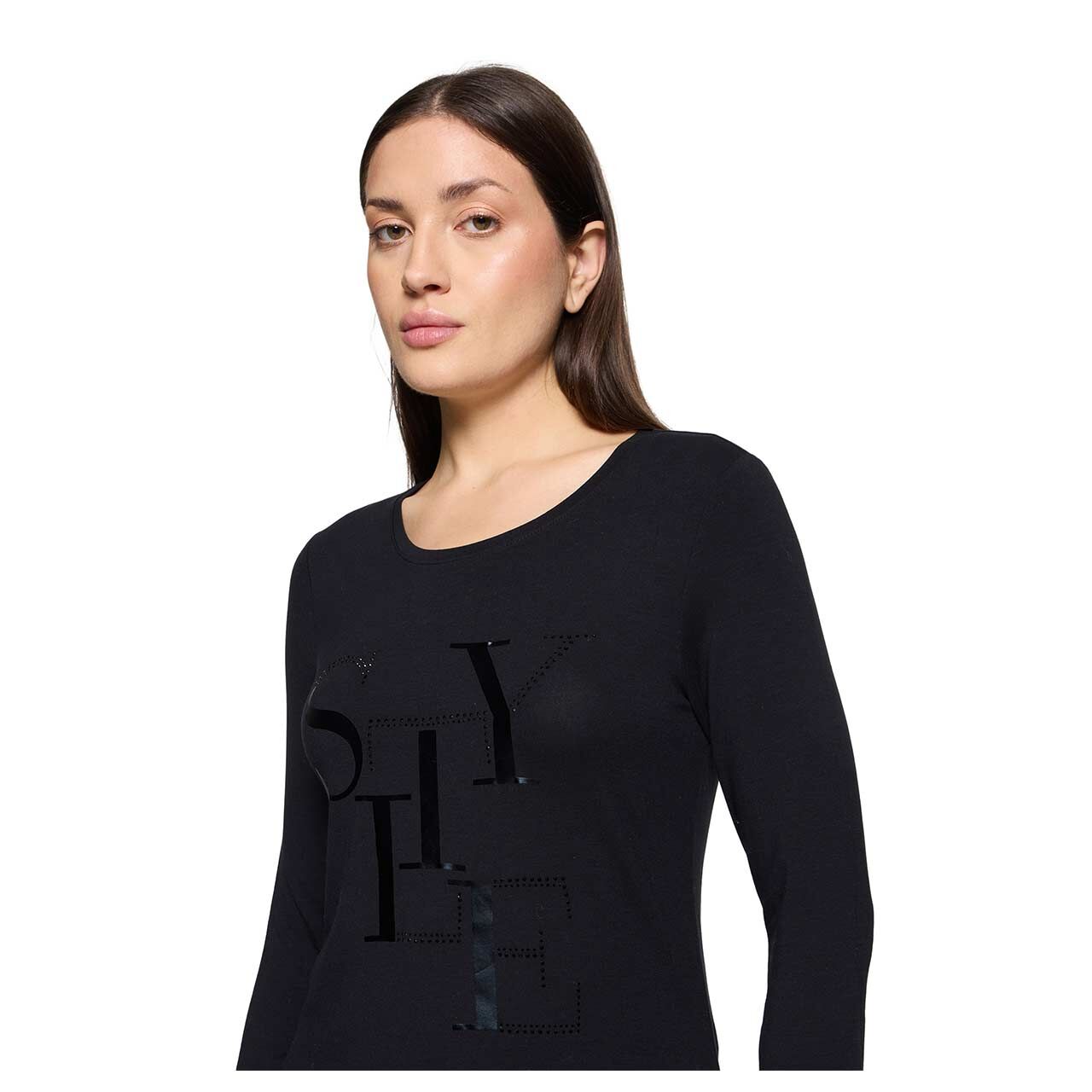 Damen 3/4 Arm Shirt in Schwarz mit Strass