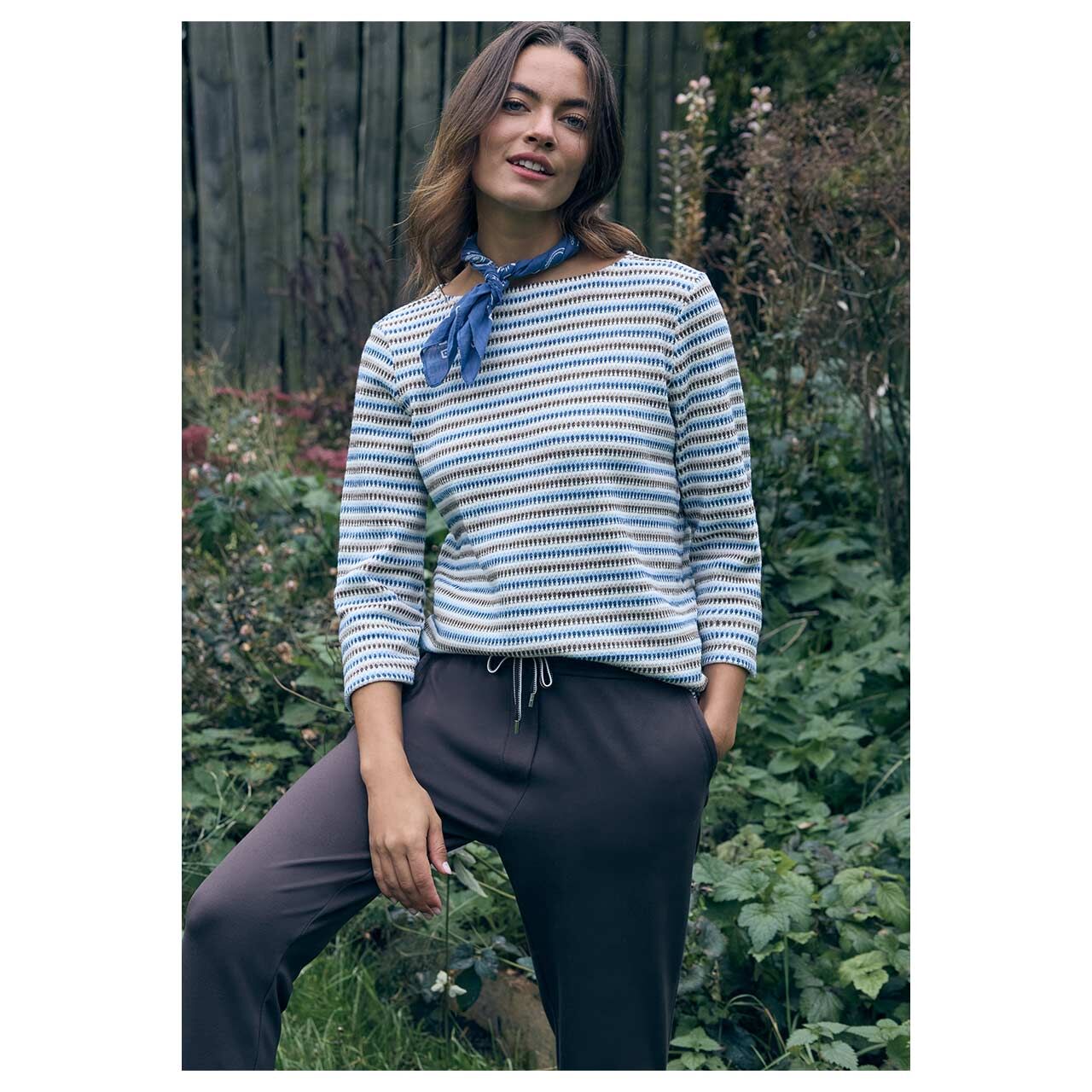 Damen 3/4 Arm Shirt Multi Stripe Knit in Blau gestreift