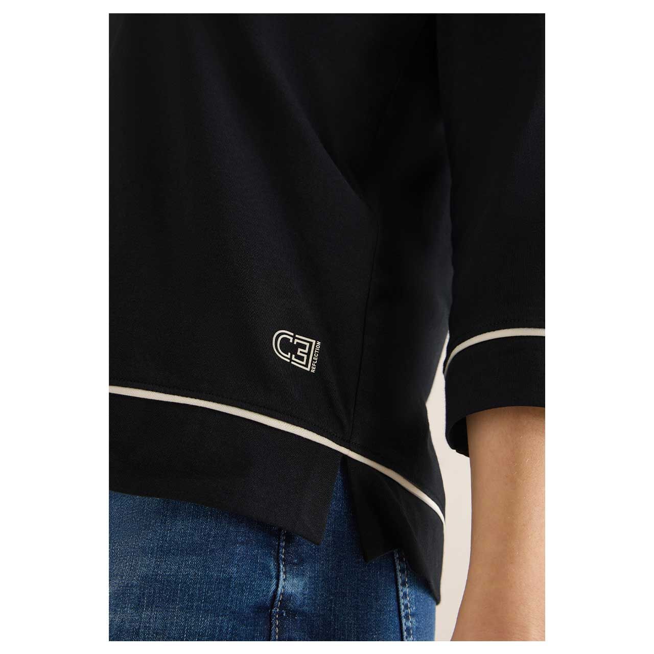 - Beschreibung Damen 3/4 Arm Shirt Piping Detail Round Neck in Schwarz Mit weißen Streifen-Details bringt dieses Damen 3/4 Arm Shirt von Cecil einen eleganten Akzent in Ihren Alltag! Der softe Baumwollmix, de… Mehr