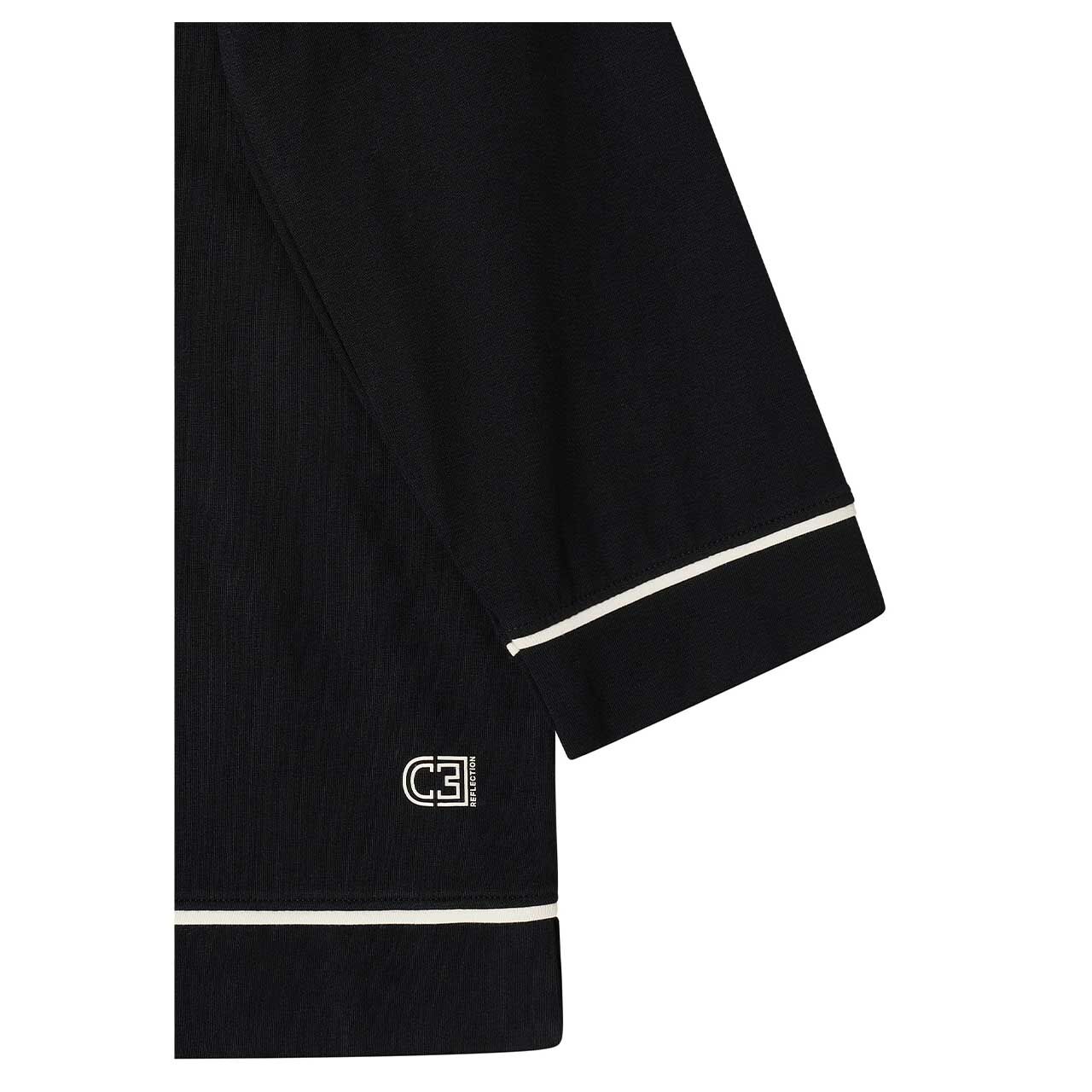Damen 3/4 Arm Shirt Piping Detail Round Neck in Schwarz