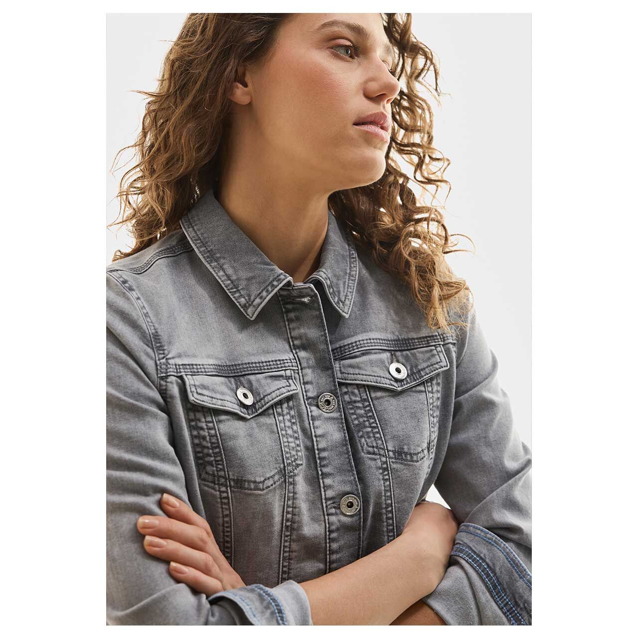 - Beschreibung Damen Jeansjacke in Grau angewaschen Diese Cecil Damenjacke setzt einen modernen Akzent in Ihrem Kleiderschrank! Brusttaschen, ein Hemdkragen und seitliche Taschen sorgen für modische Details. D… Mehr