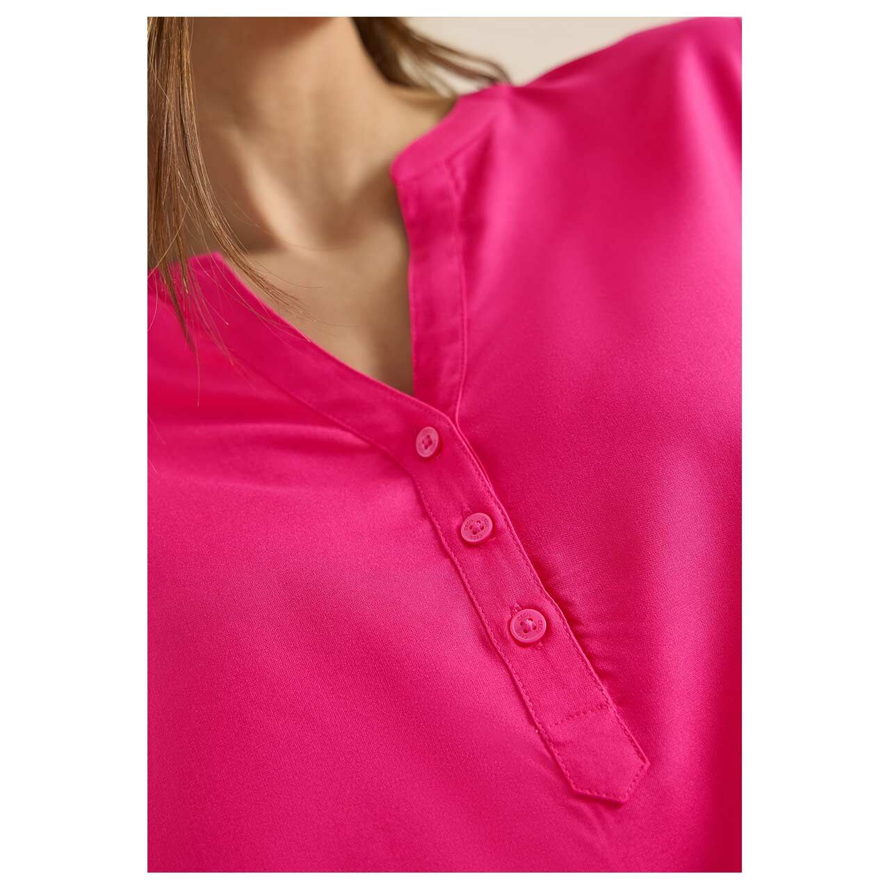 Cecil Damen Kurzarm Bluse Solid Splitneck beetroot pink