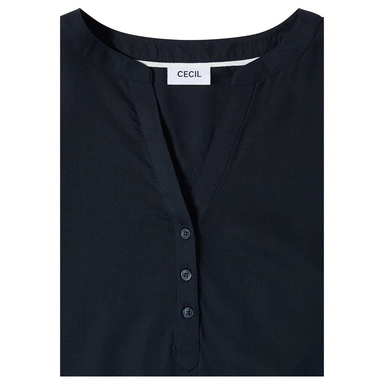 Cecil Damen Kurzarm Bluse / Form: Solid Splitneck / Farbe: Dunkelblau - FarbNr.: 15512