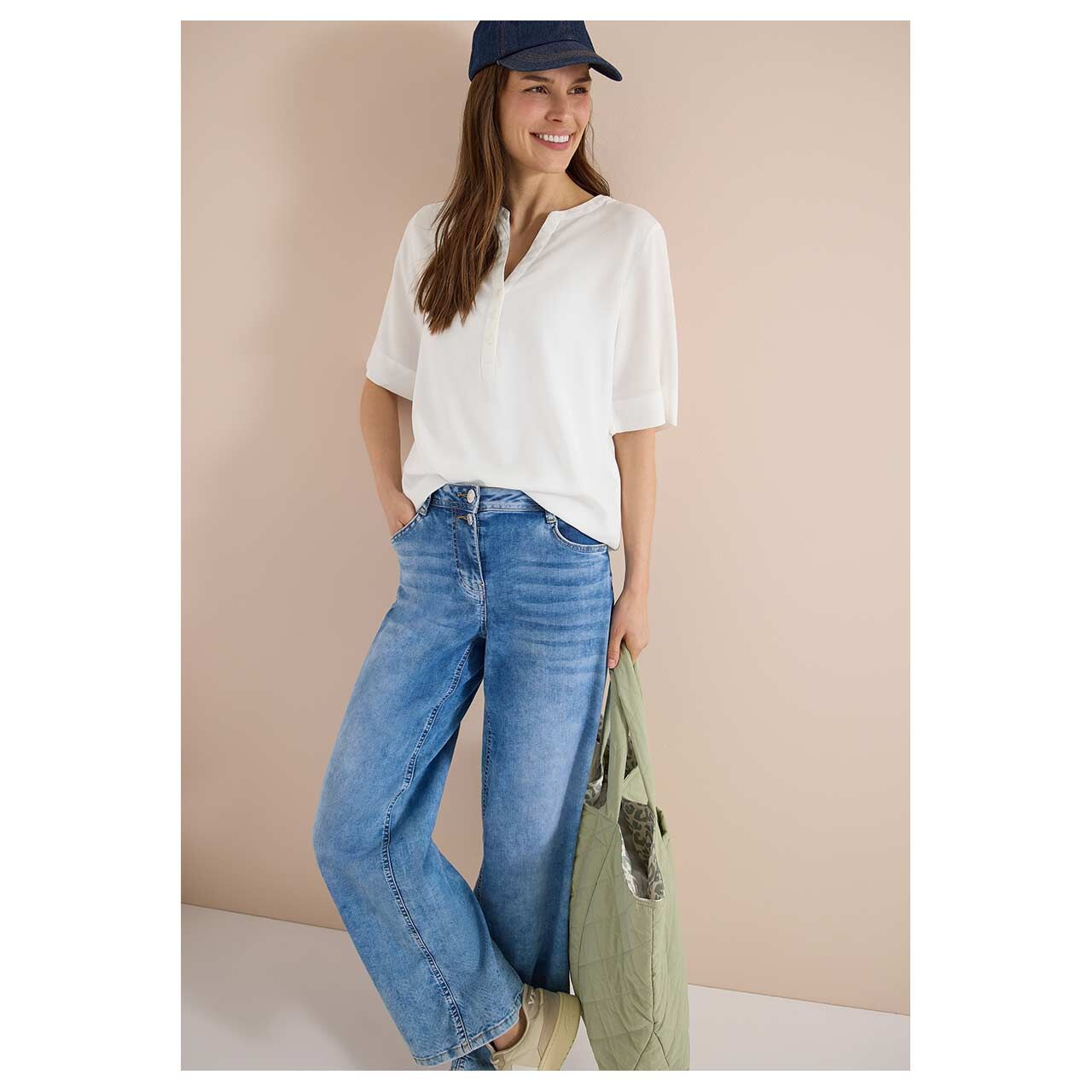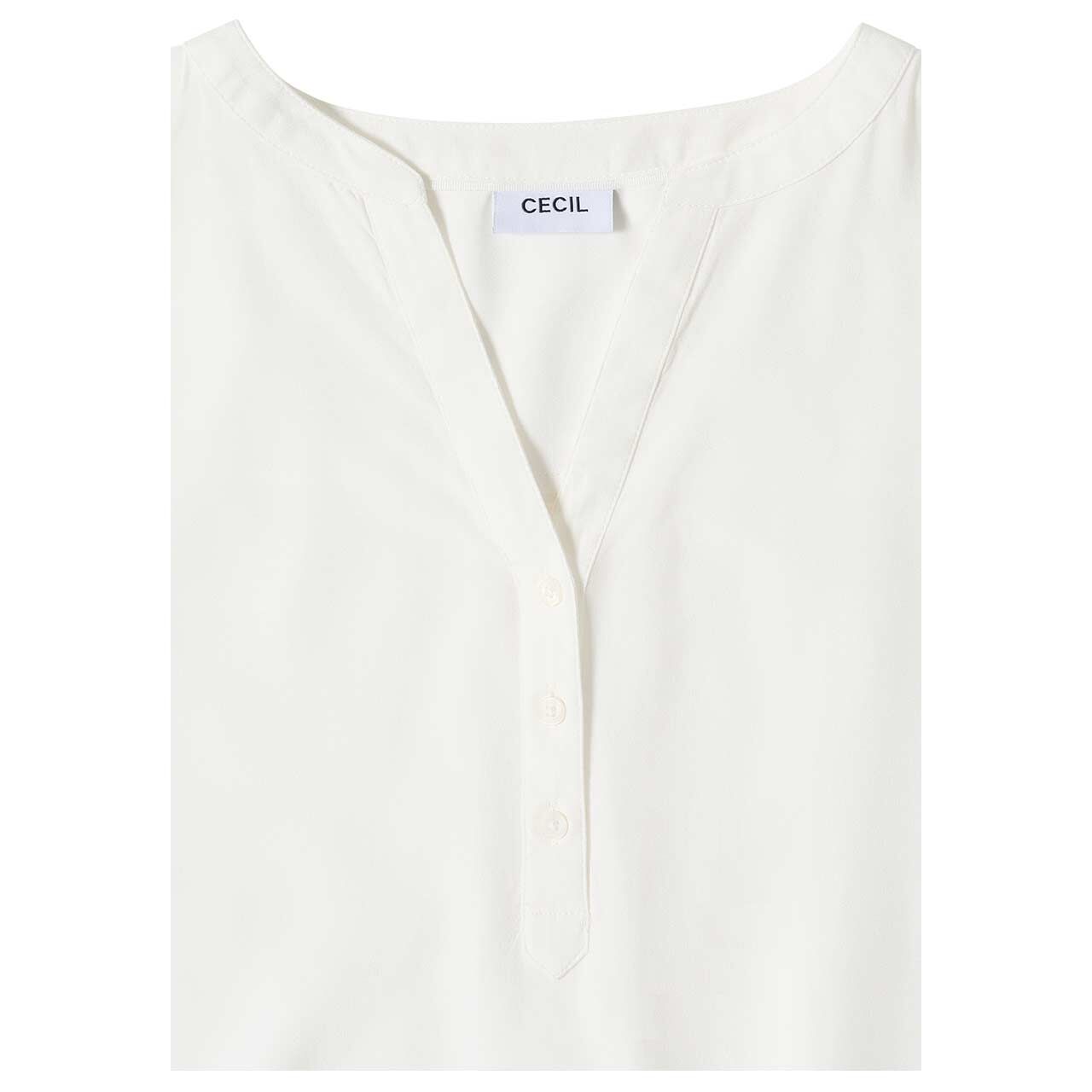 Cecil Damen Kurzarm Bluse Solid Splitneck vanilla white