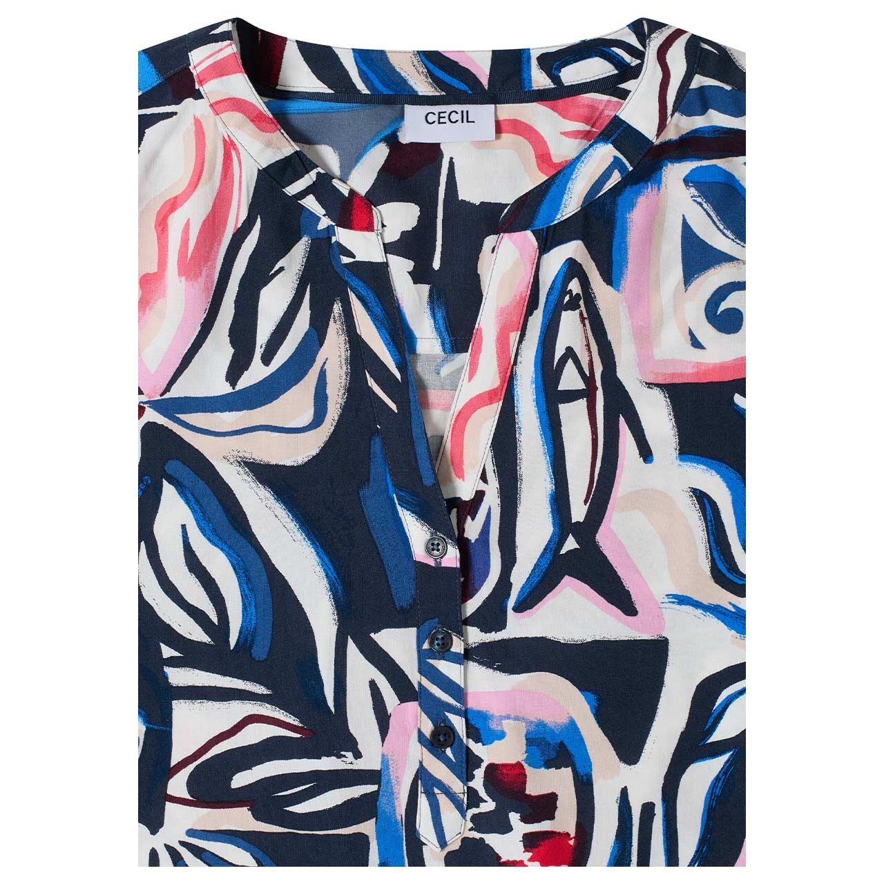 Cecil Damen Kurzarm Bluse Splitneck universal blue print