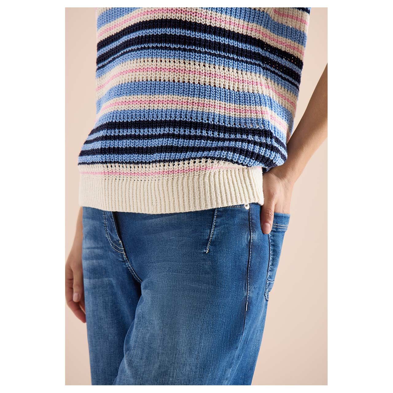 Cecil Damen Kurzarm Pullover Fancy Tapeyarn universal blue