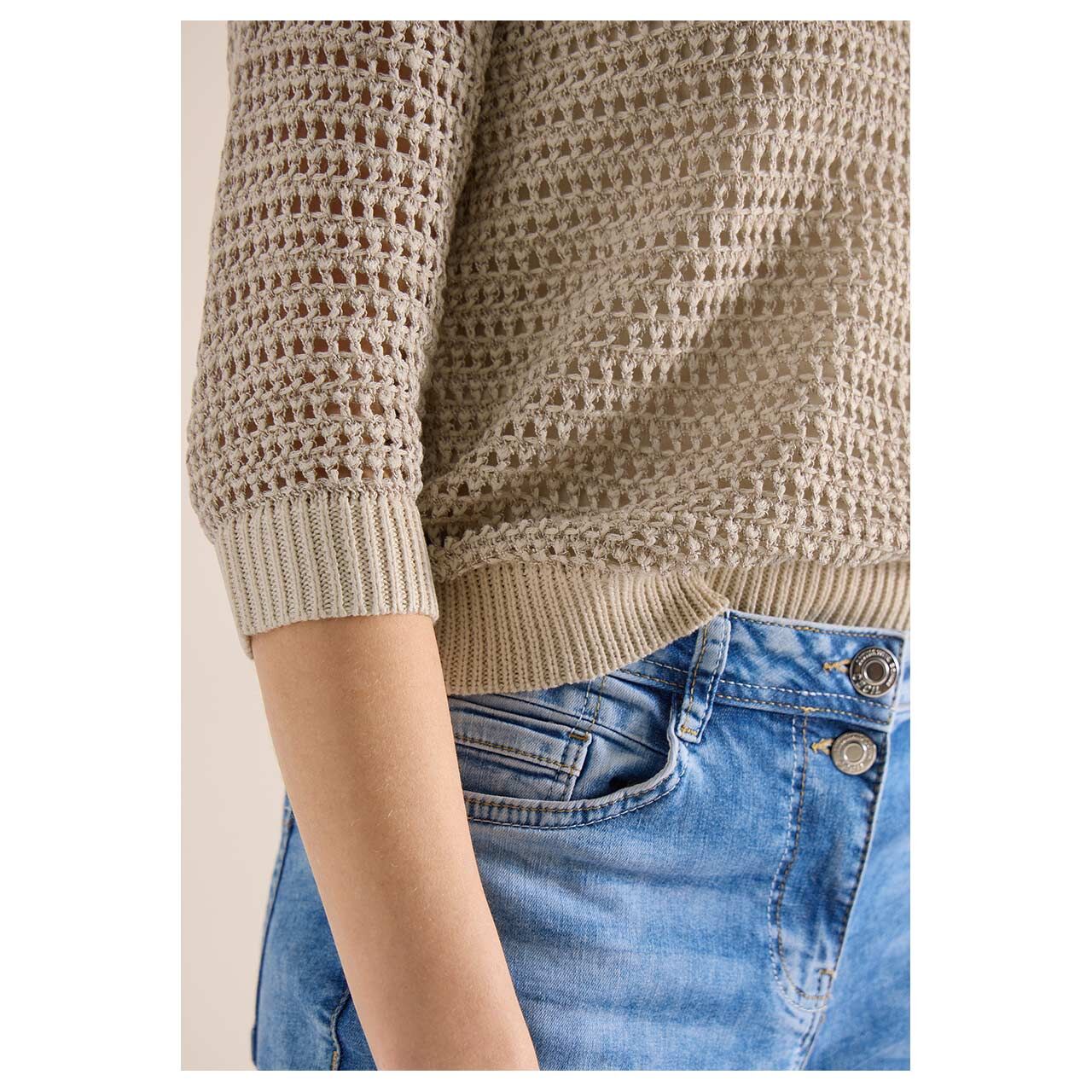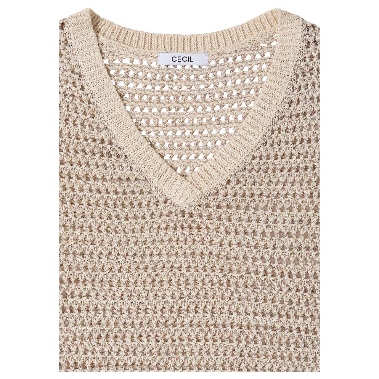 Cecil Damen Kurzarm Pullover Structured Fancy Yarn Mix pearl beige melange