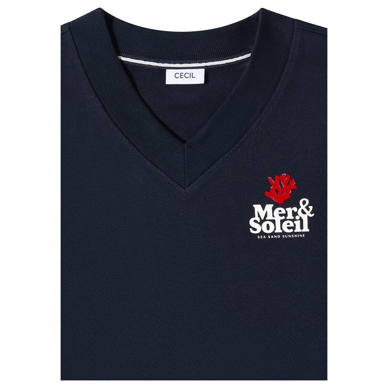 Maritim! Dieses Damen Sweatshirt von Cecil präsentiert sich mit einem besonderen Blickfang auf der Front- und Rückseite. Der V-Ausschnitt sorgt für eine feminine Linie, während die dickere Qualität einen hohen Tragekomfort bietet.