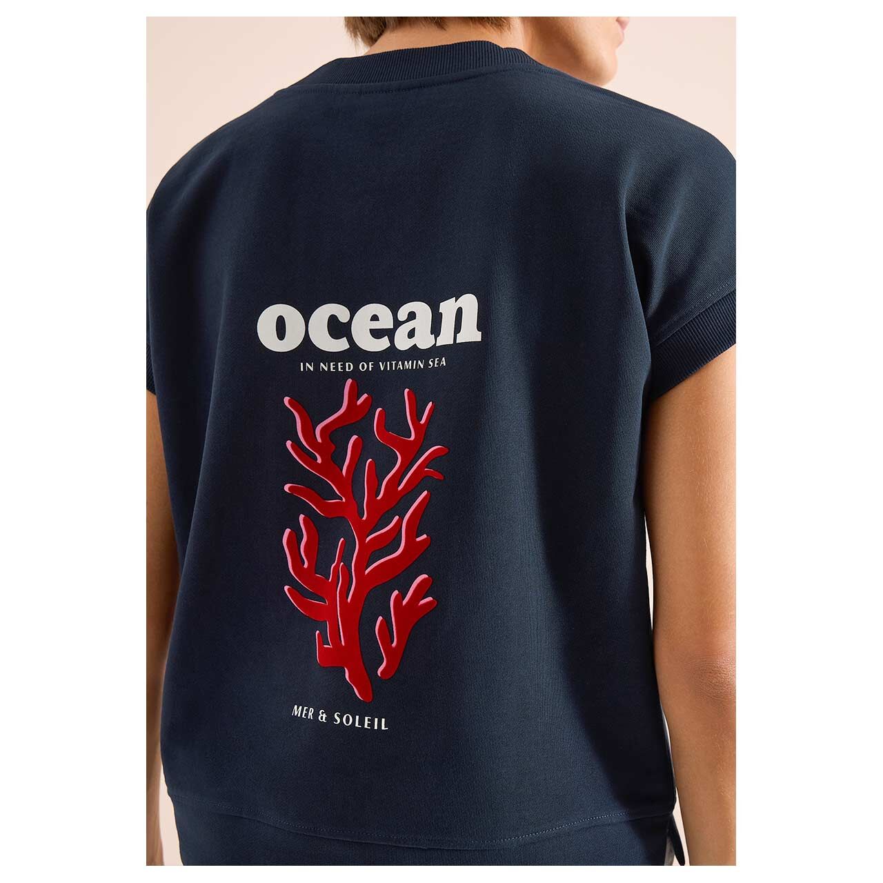 Damen Kurzarm Sweatshirt V-Neck in Dunkelblau mit Print