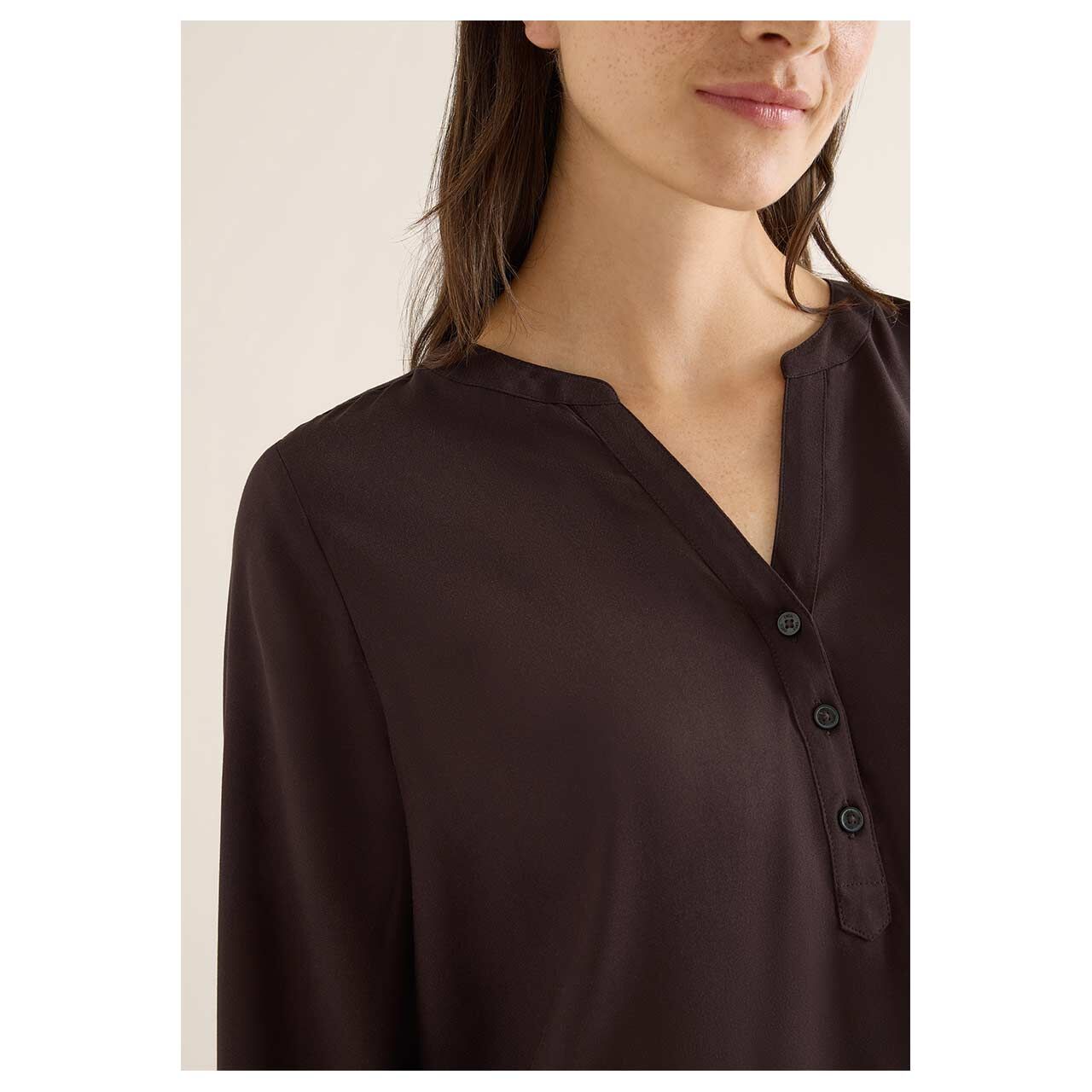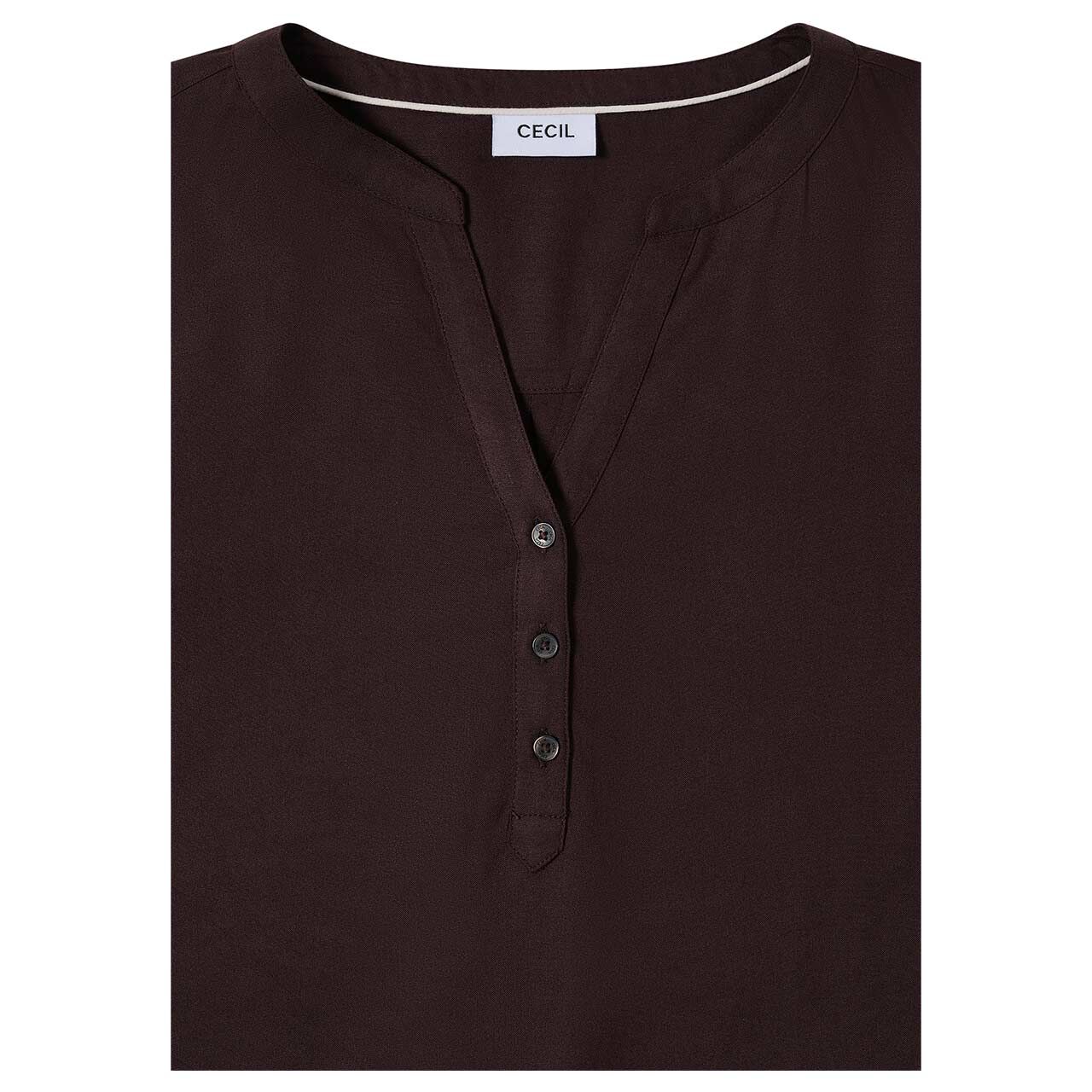 - Beschreibung Damen Langarm Bluse Solid in Dunkelbraun Die unifarbene Cecil Damen Bluse punktet mit einem Split Neck und dekorativer Knopfleiste. Der gerundete Saum mit seitlichen Schlitzen und die weiche Vis… Mehr