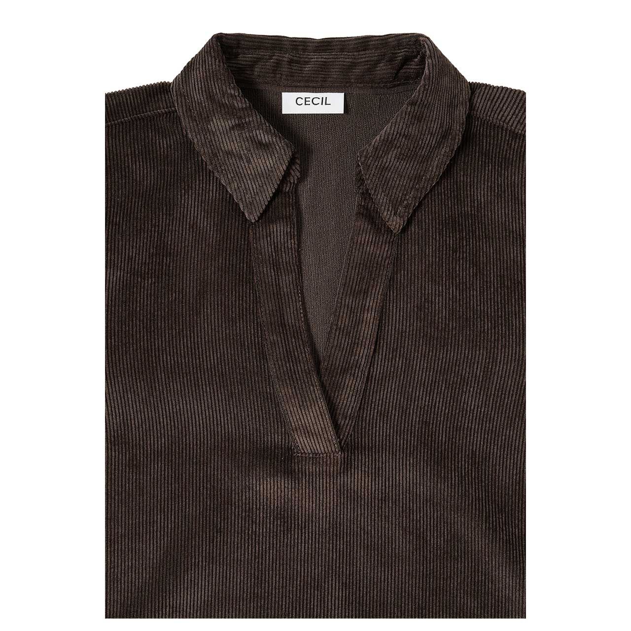 - Beschreibung Damen Langarm Cord Bluse Corduroy Splitneck in Dunkelbraun Die Damen Bluse von Cecil vereint den weichen Charme von Cord mit einem eleganten, femininen Schnitt. Der Ausschnitt sorgt für eine l&a… Mehr