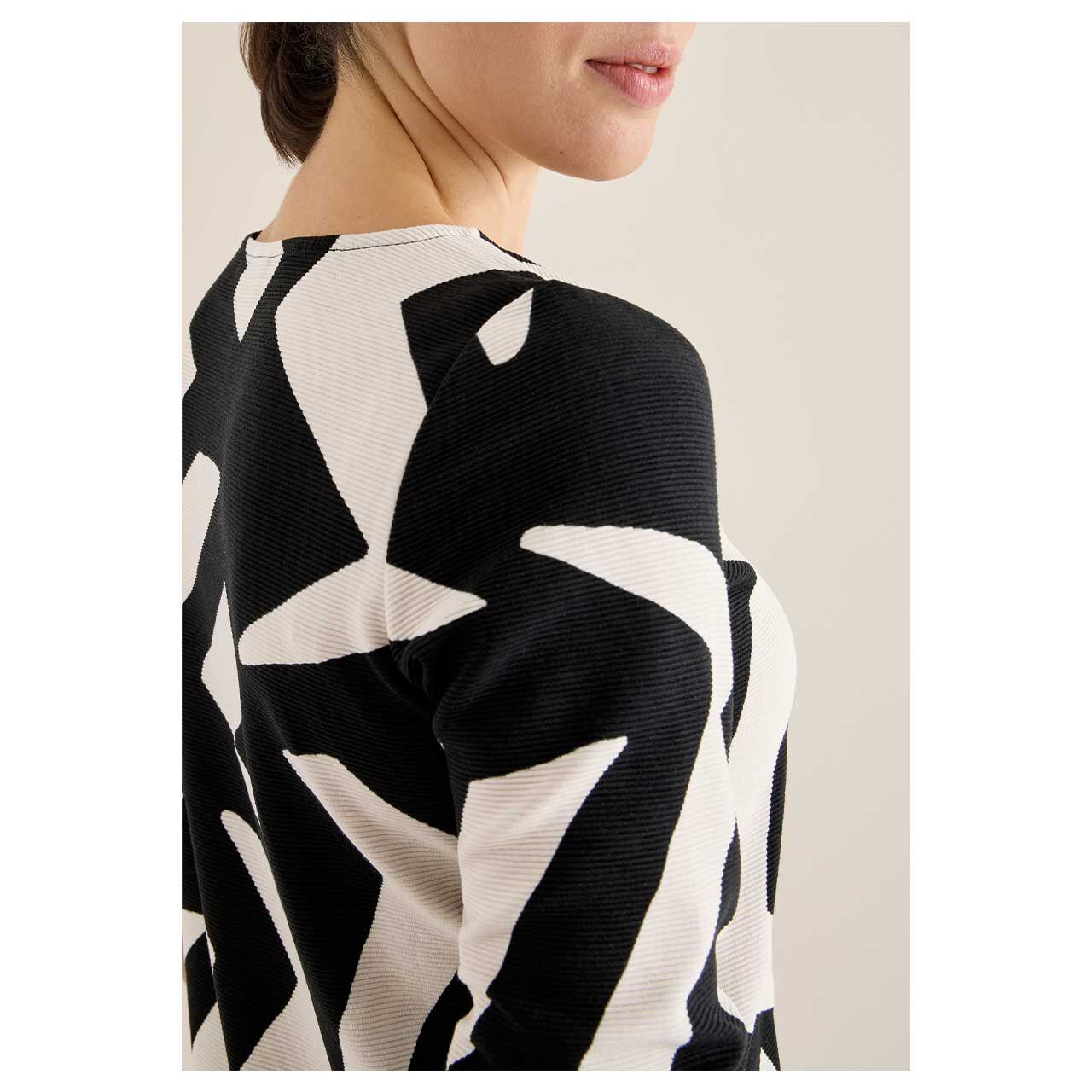 Das Damen Langarm Shirt von Cecil überzeugt mit grafischem Design und angenehmem Tragegefühl. Der weiche Viskosemix mit Stretchanteil, der U-Boot-Ausschnitt und die langen Ärmel machen es zum idealen Begleiter für stilvolle Everyday-Looks!