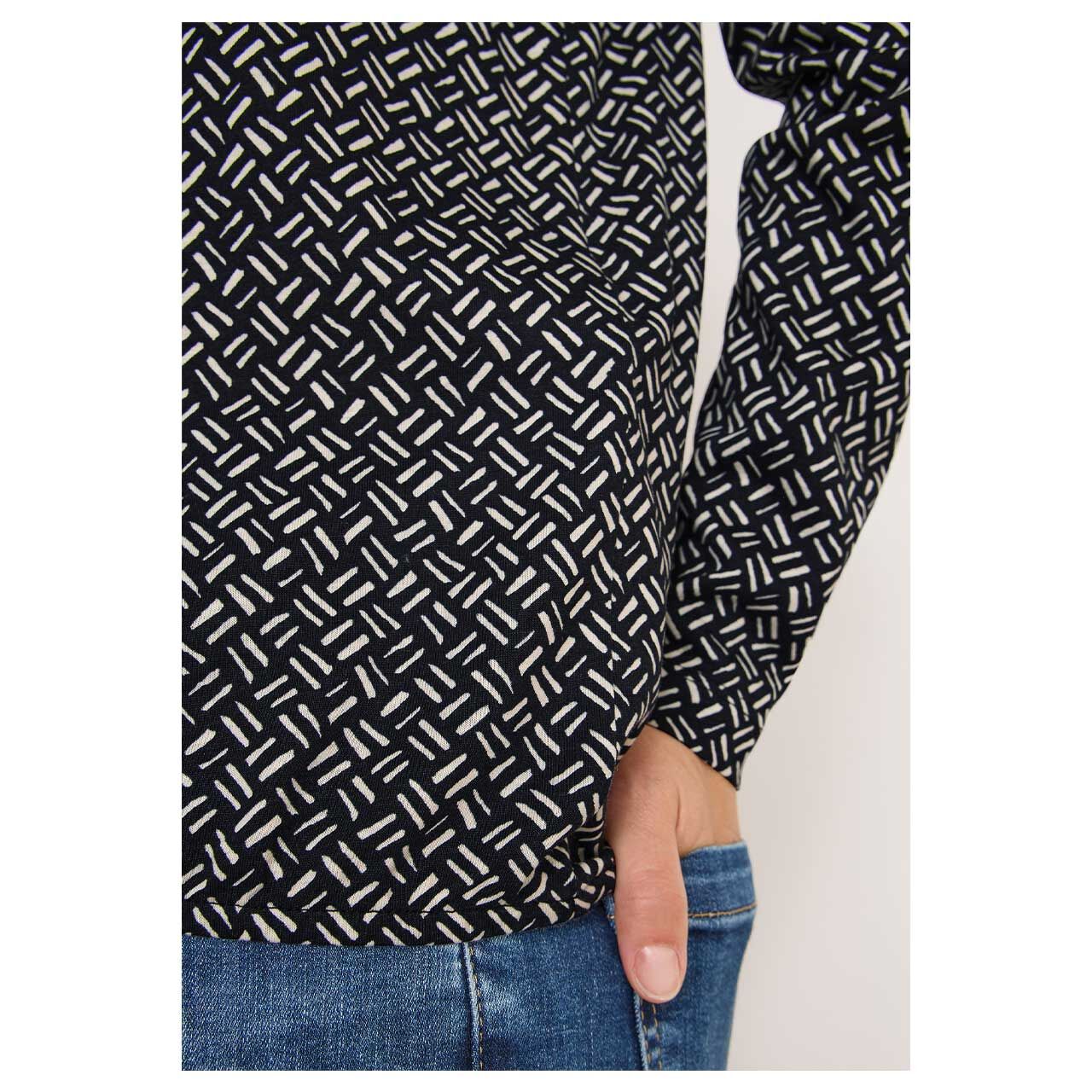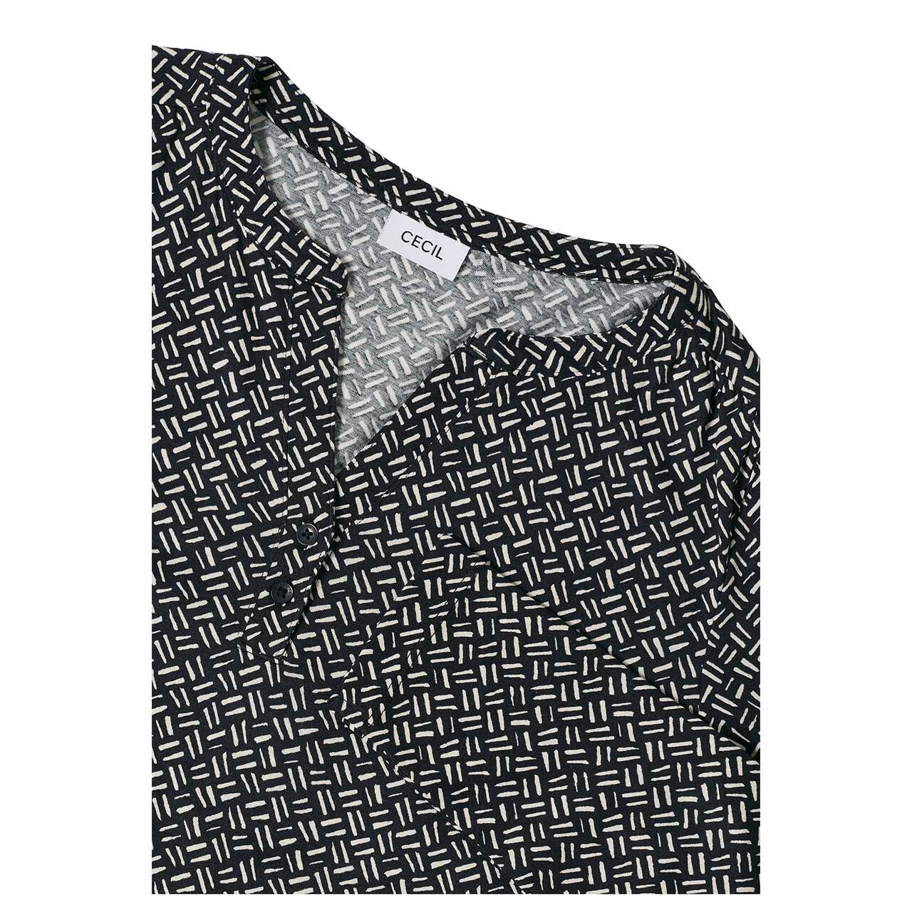 Mit grafischem Muster und liebevollen Details ist dieses Damen Langarm Shirt von Cecil ein echter Hingucker. Der Split Neck mit Knopfdetail, der elastische Saum und die langen Ärmel sorgen für eine feminine Silhouette.