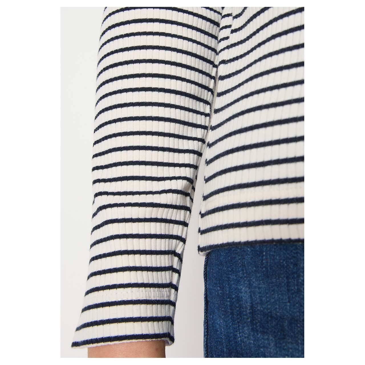 Damen Langarm Shirt Stripe Rib Boatneck in Cremeweiß gestreift