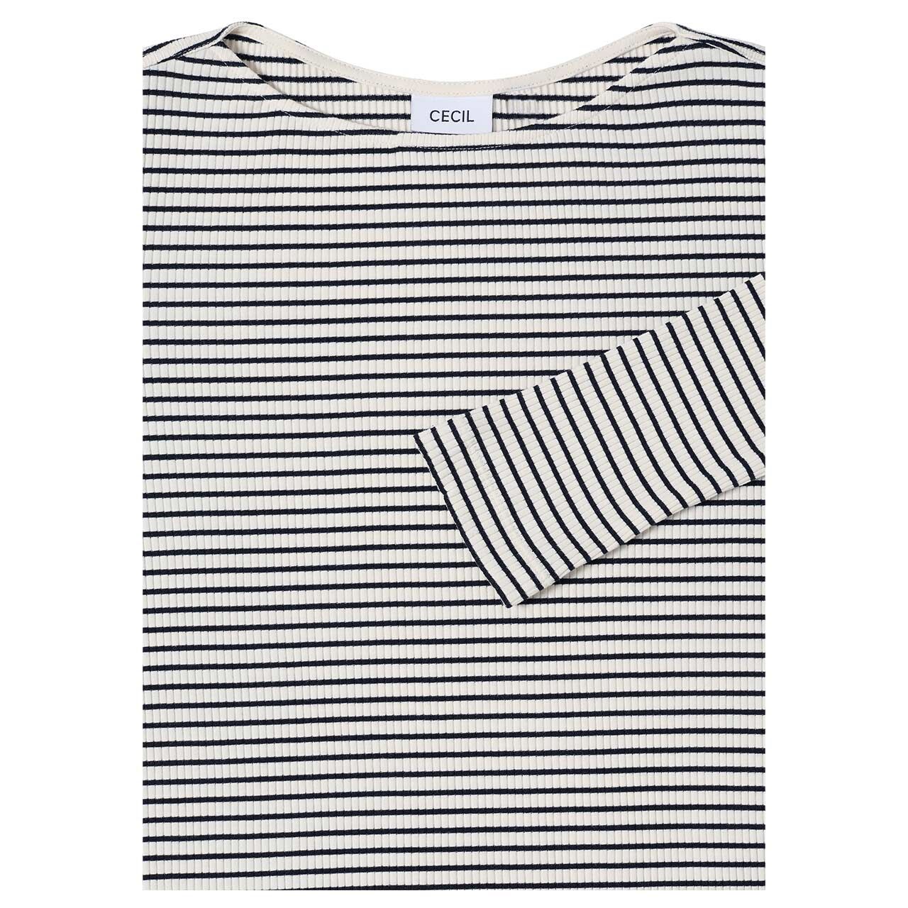 - Beschreibung Damen Langarm Shirt Stripe Rib Boatneck in Cremeweiß gestreift Im maritimen Look präsentiert sich dieses gestreifte Damen Langarm Shirt von Cecil. Die feine Rippstruktur schmeichelt d… Mehr