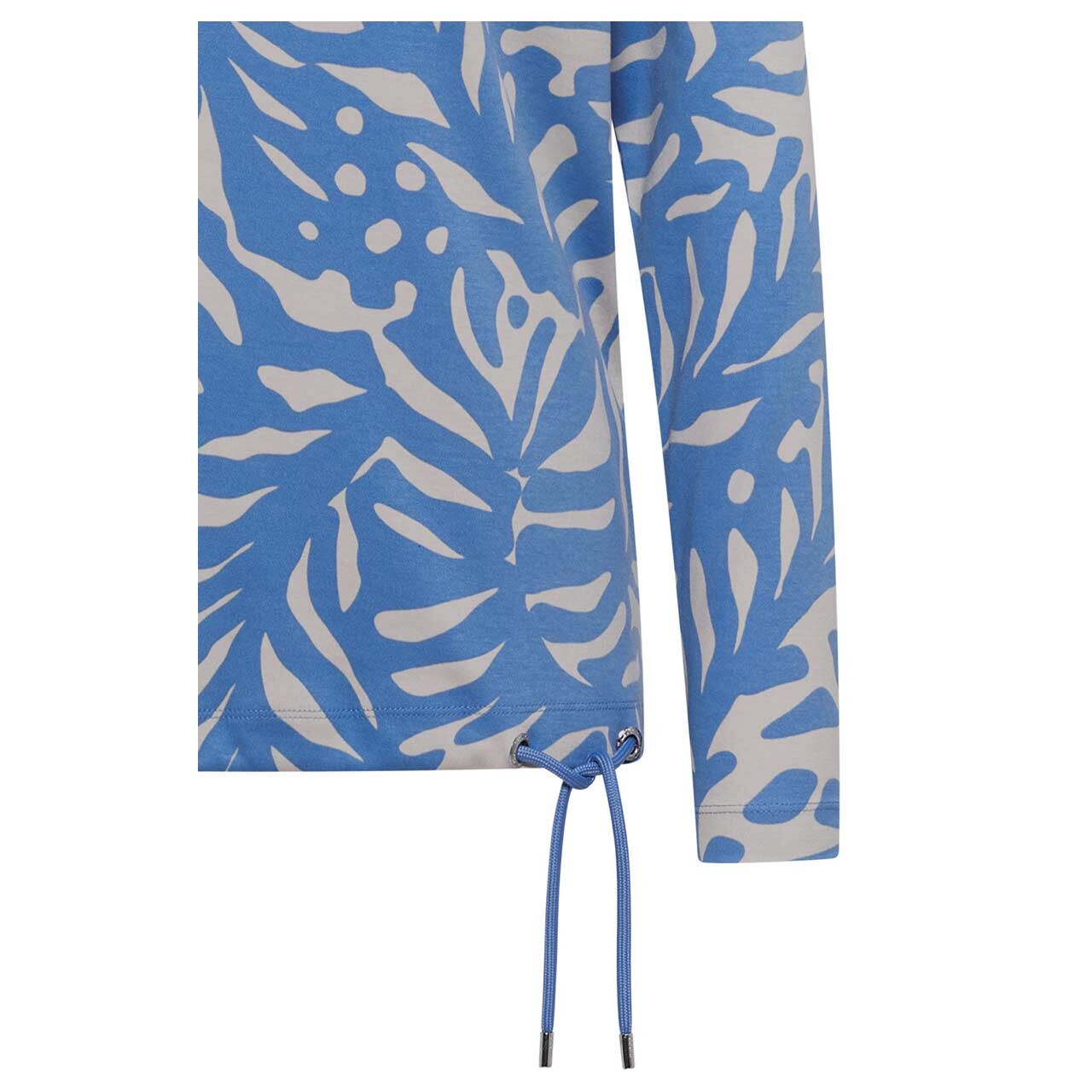 Damen Langarm Shirt Two-Tone Boatneck in Blau mit Print