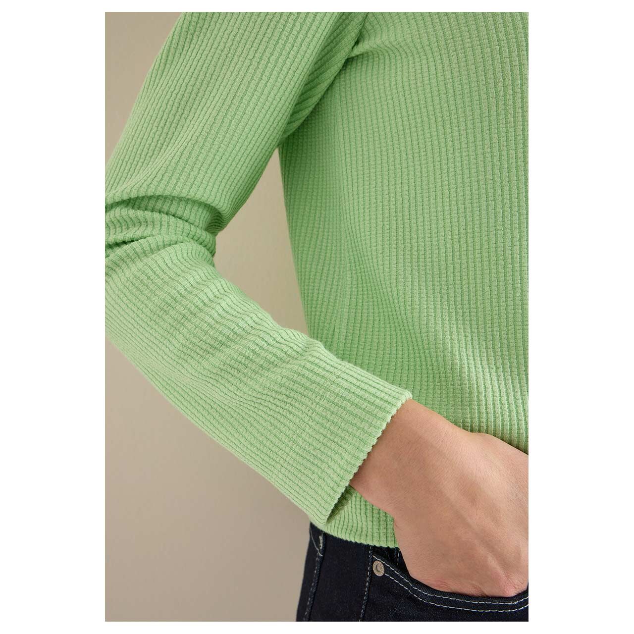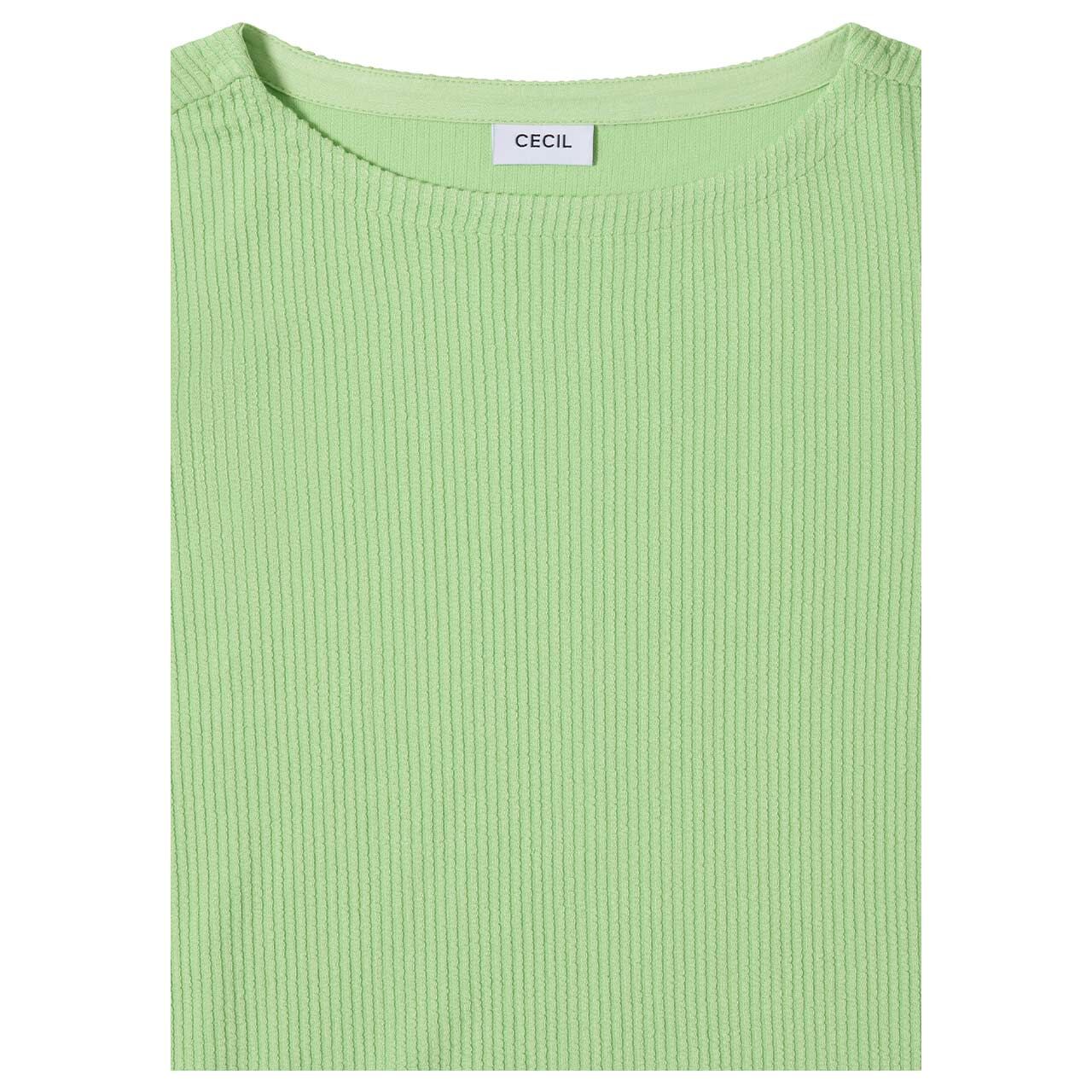 Damen Langarm Shirt Vertical Structure Boatneck in Hellgrün gestreift