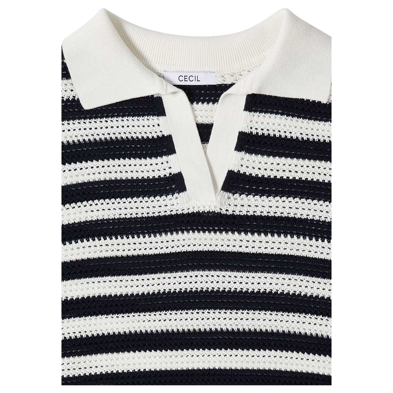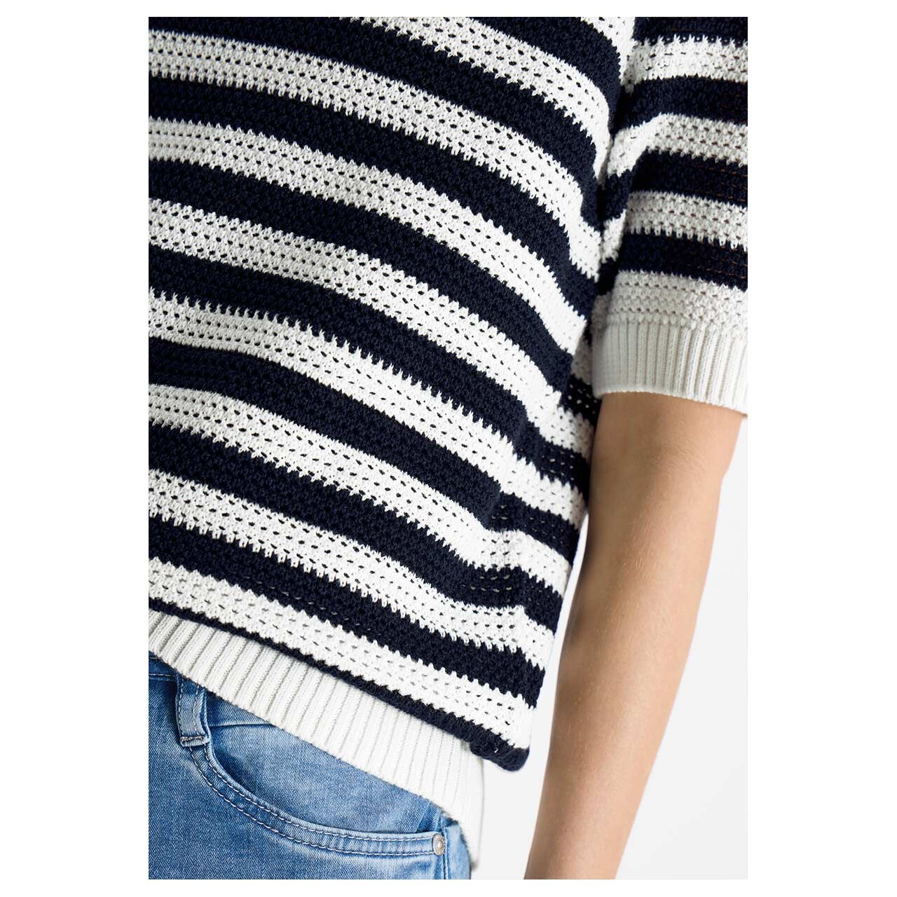 Cecil Damen Polo Kurzarm Pullover Mesh Stripe universal blue