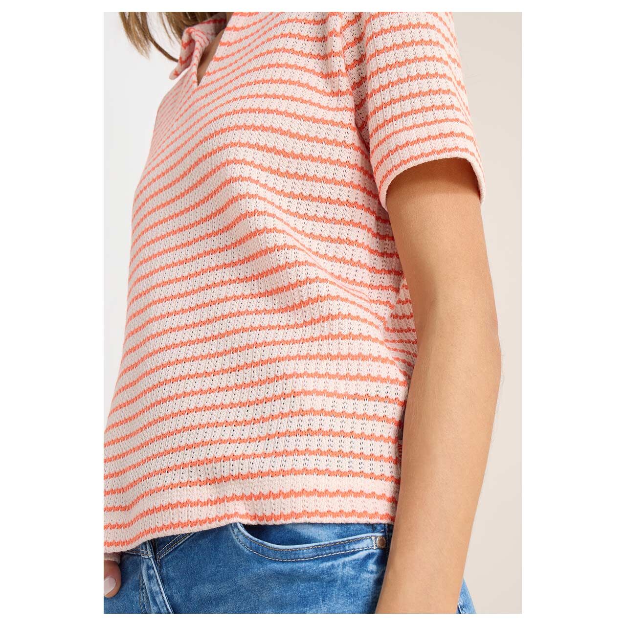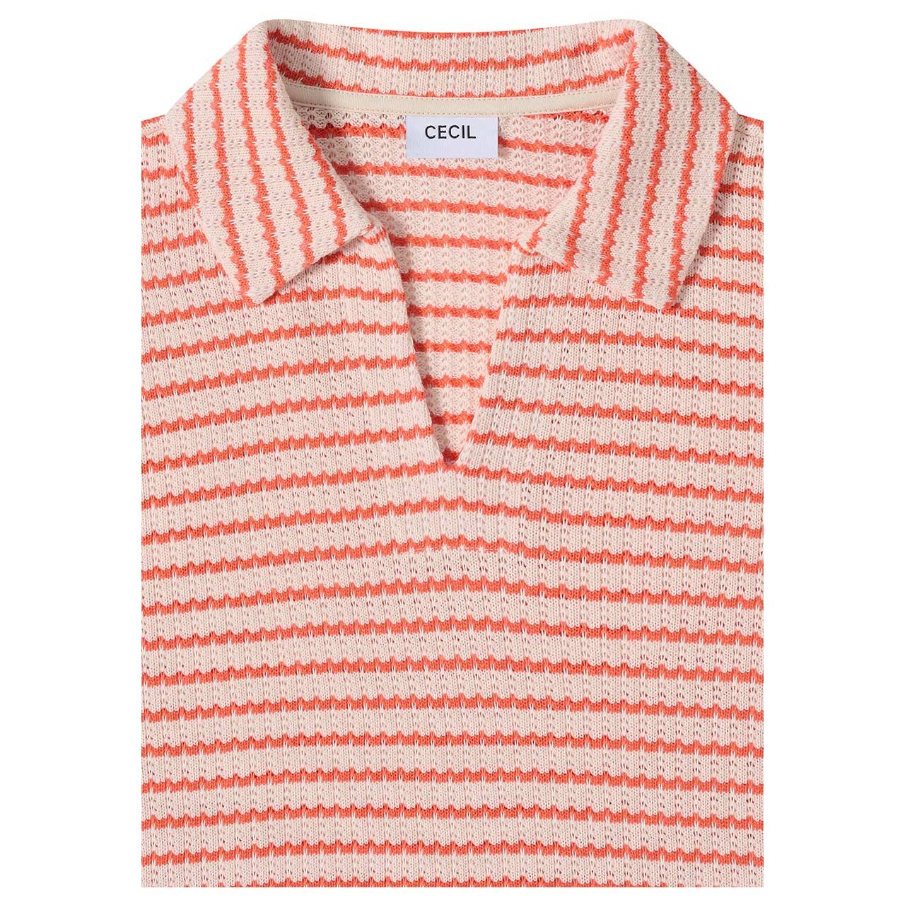 Cecil Damen Poloshirt Striped Ajour cherry tomato orange