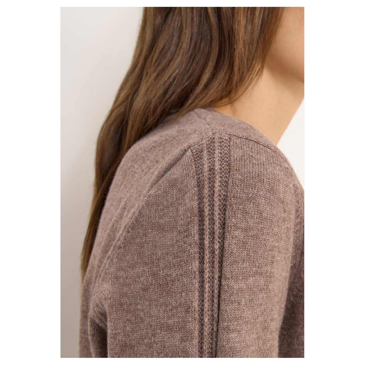 Damen Pullover Cosy Short V-Neck in Braun meliert