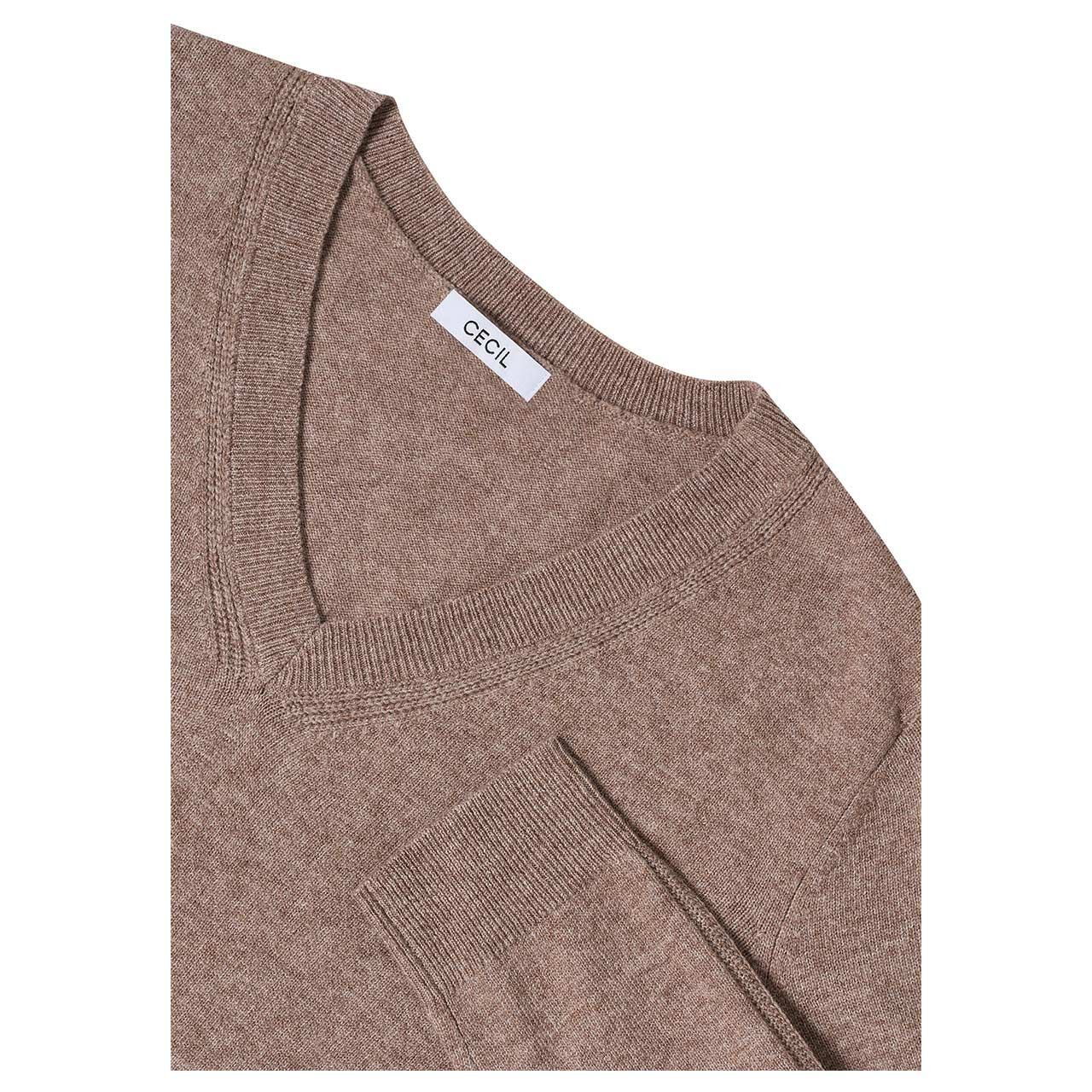 Holen Sie sich mit dem Damen Pullover von Cecil ein echtes Wohlfühlteil für die kühleren Tage in den Kleiderschrank! Der weiche Feinstrick schmiegt sich angenehm an die Haut, während der V-Ausschnitt und der leicht verkürzte Schnitt für einen modernen Look sorgen. In seinem melierten Braunton lässt sich der Pullover perfekt kombinieren.