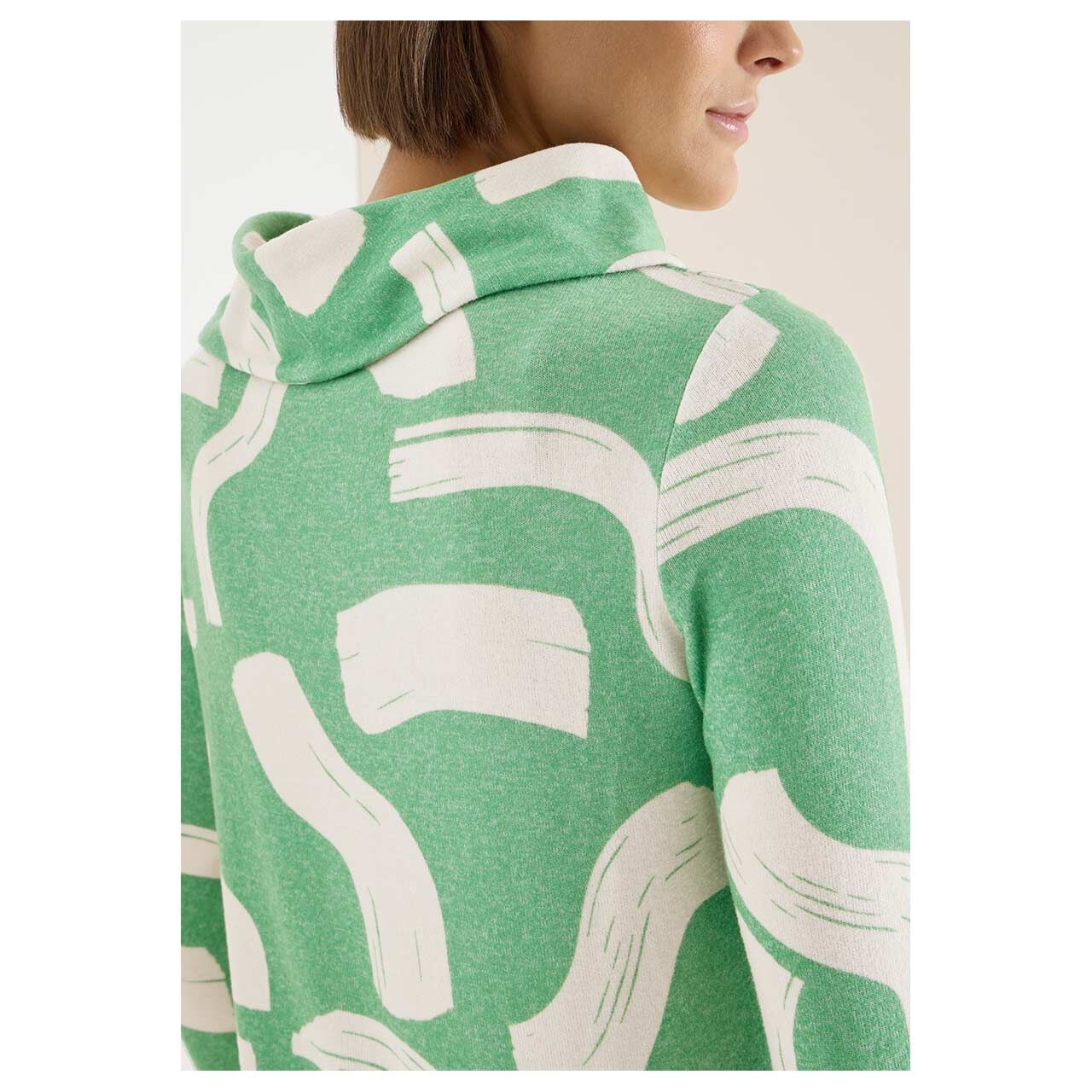 Bringen Sie frische Leichtigkeit in Ihre Garderobe! Das sanfte Hellgrün von dem Cecil Damen Pullover wirkt freundlich und modern. Der grafische Print setzt einen dezenten Akzent, ohne aufdringlich zu sein. Der große, weich fallende Kragen verleiht dem Oberteil eine lässige Note und sorgt gleichzeitig für ein angenehmes Tragegefühl.