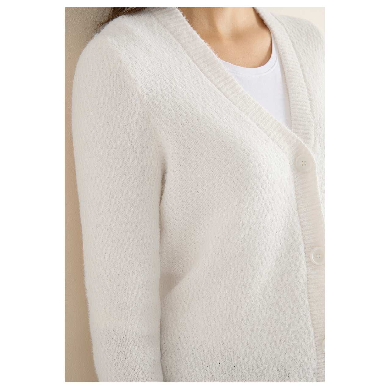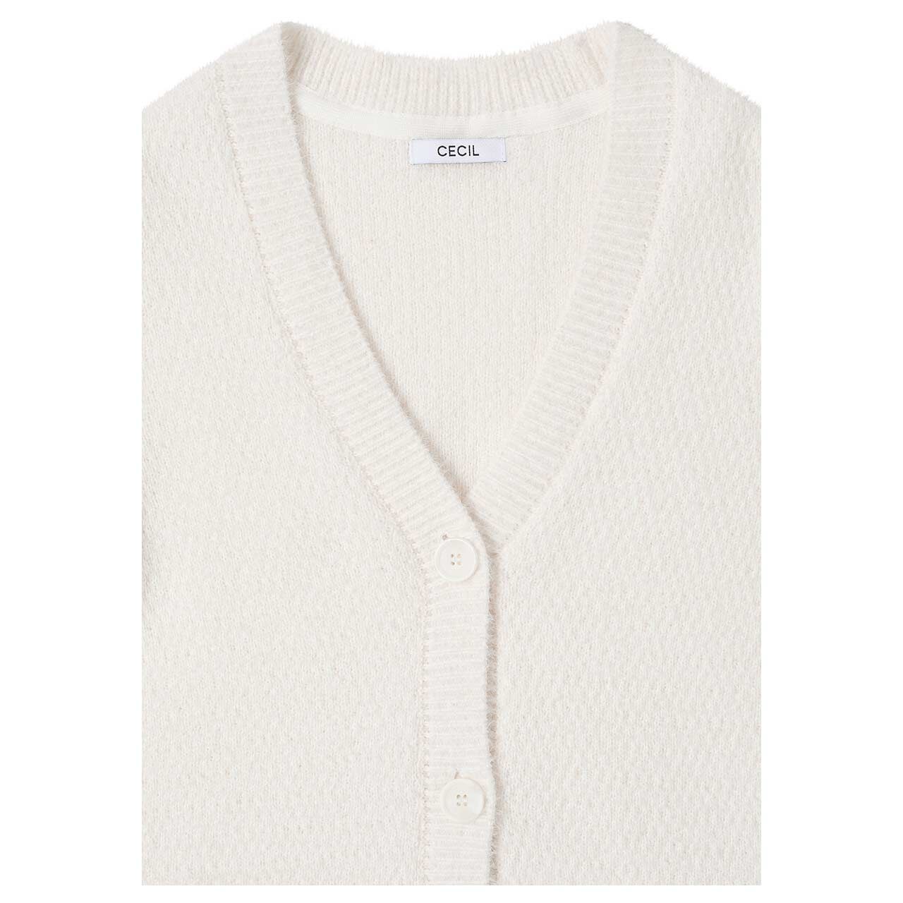 - Beschreibung Damen Strickjacke Featheryarn Cardigan in Cremeweiß Flauschig und feminin: Die Damen Strickjacke von Cecil begeistert mit ihrer soften Qualität und einem eleganten V-Ausschnitt. Die K… Mehr