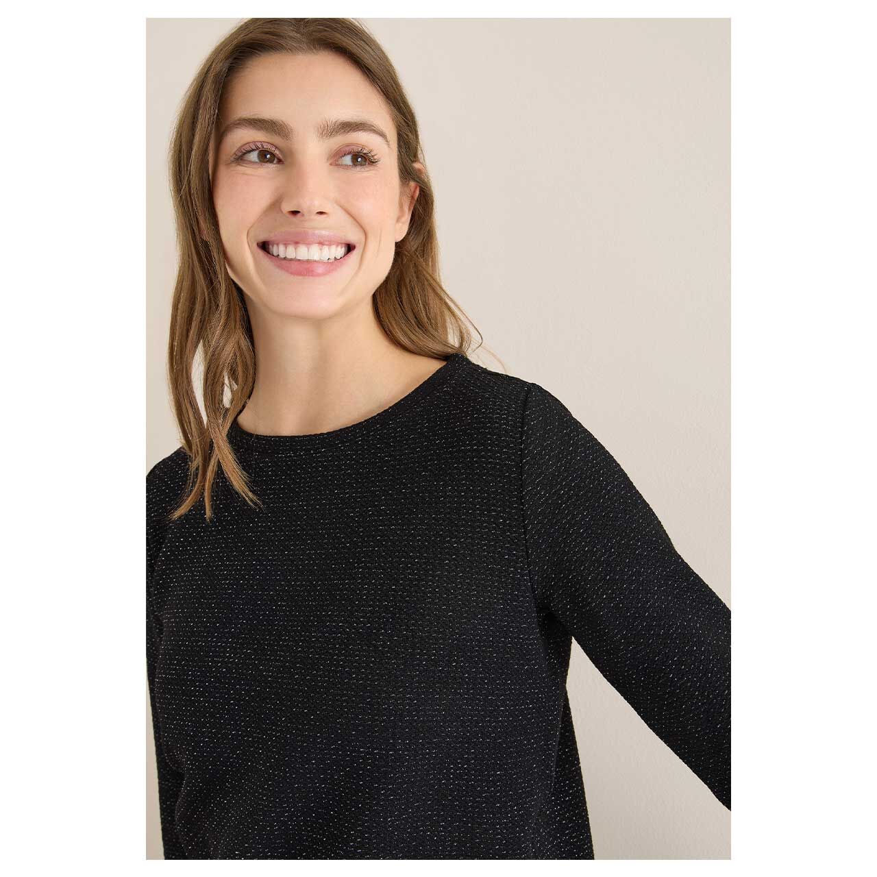 Damen Sweatshirt Glitter Structure Boat Neck in Schwarz
