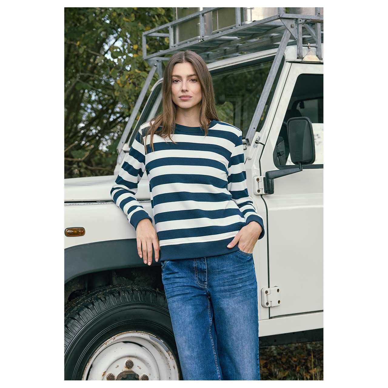 - Beschreibung Damen Sweatshirt Striped in Dunkelblau gestreift Dieses gestreifte Damen Sweatshirt von Cecil ist ein unkomplizierter Alltagsbegleiter mit sportiver Note. Der softe Baumwollmix sorgt für angeneh… Mehr