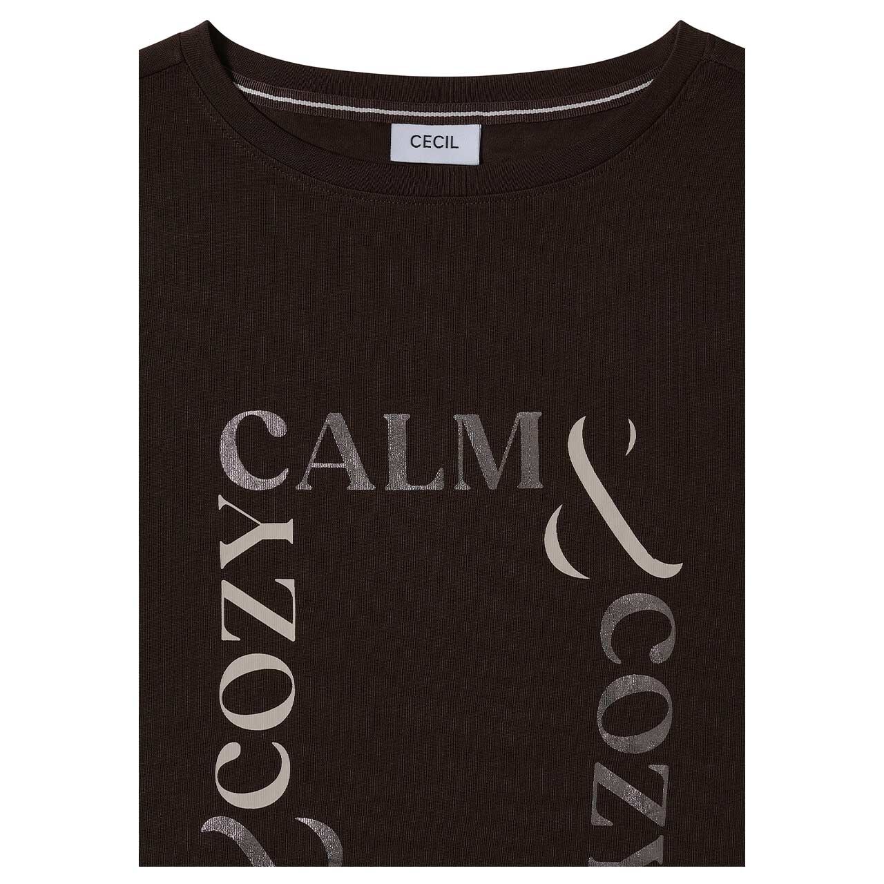 Damen T-Shirt Calm and Cozy in Dunkelbraun mit Print