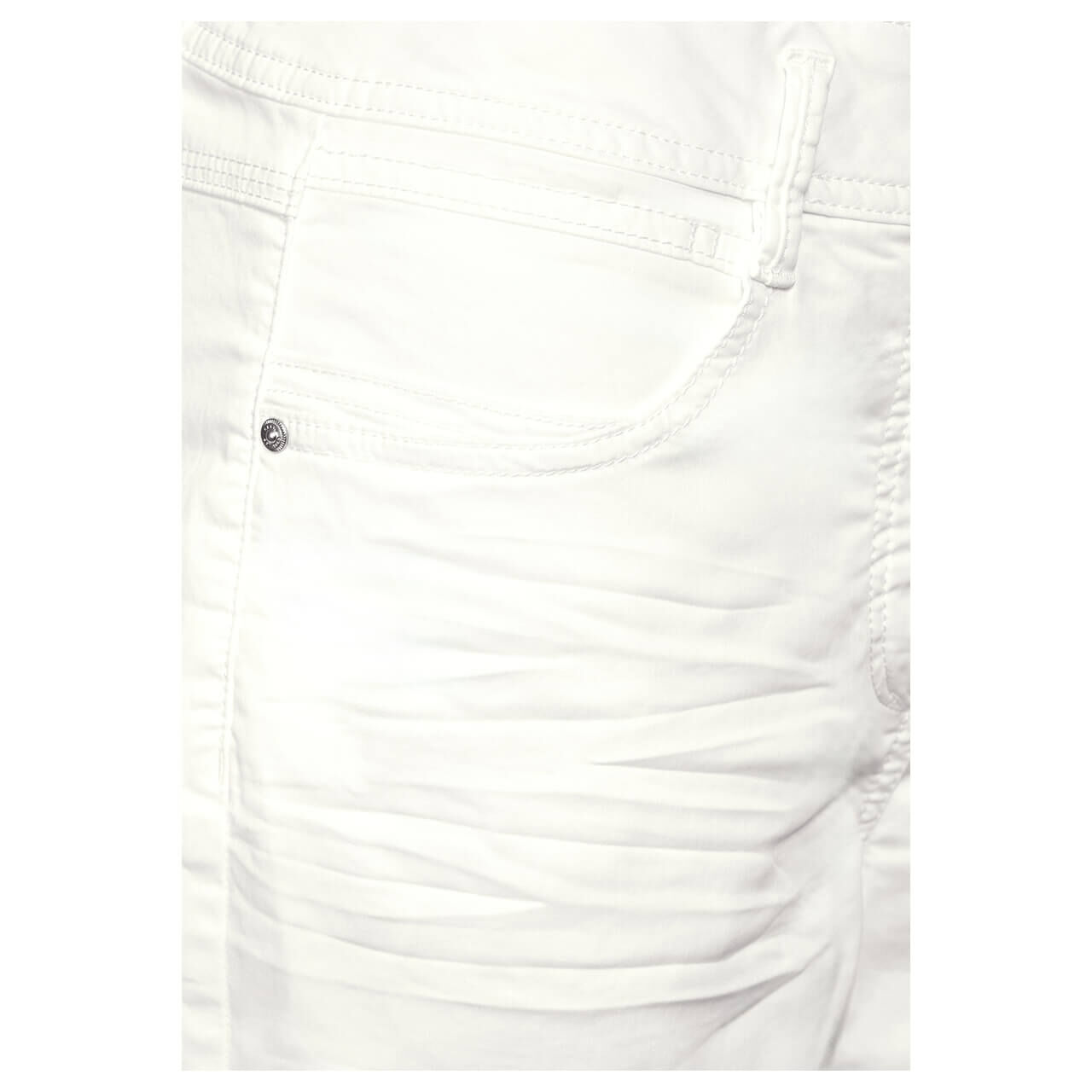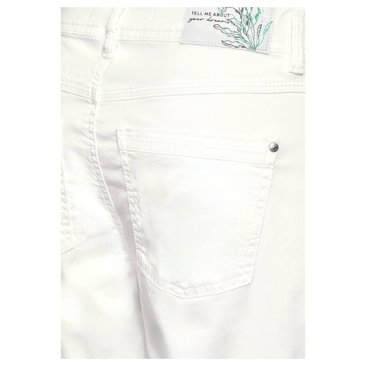 Neele von Cecil Jeans hat sich gegen ein strahlendes Weiß und dafür lieber für einen cremigen Ton entschieden. Diesen kombiniert die locker geschnittene Damenhose mit einem verkürzten Bein, etwas tiefer sitzenden Gürtelschlaufen und einem Patch mit Wording.
