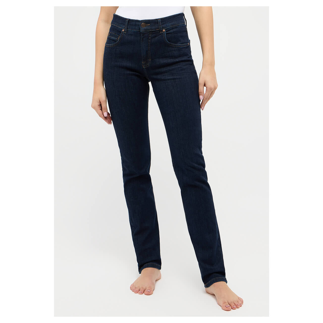 Die Angels Cici lässt sich durch ihren schlichten, modernen Look vielseitig kombinieren. Die Nieten und die braunen Nähte runden das Design der Damenjeans gekonnt ab.