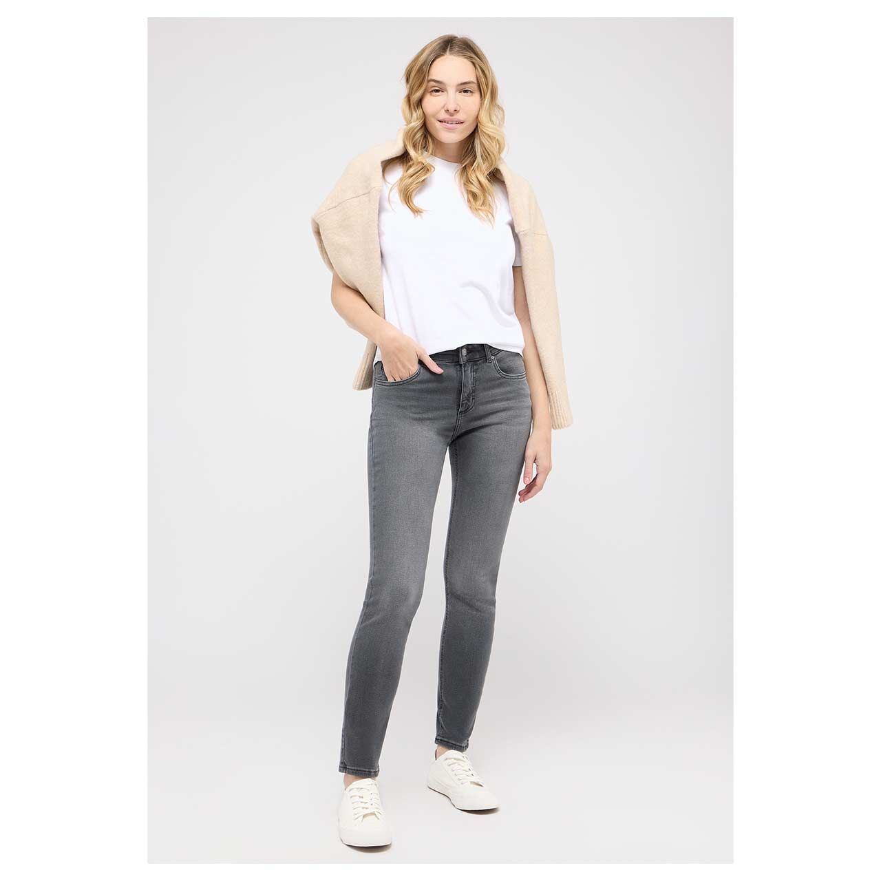 Stretch Damenjeans Cici in Dunkelgrau verwaschen