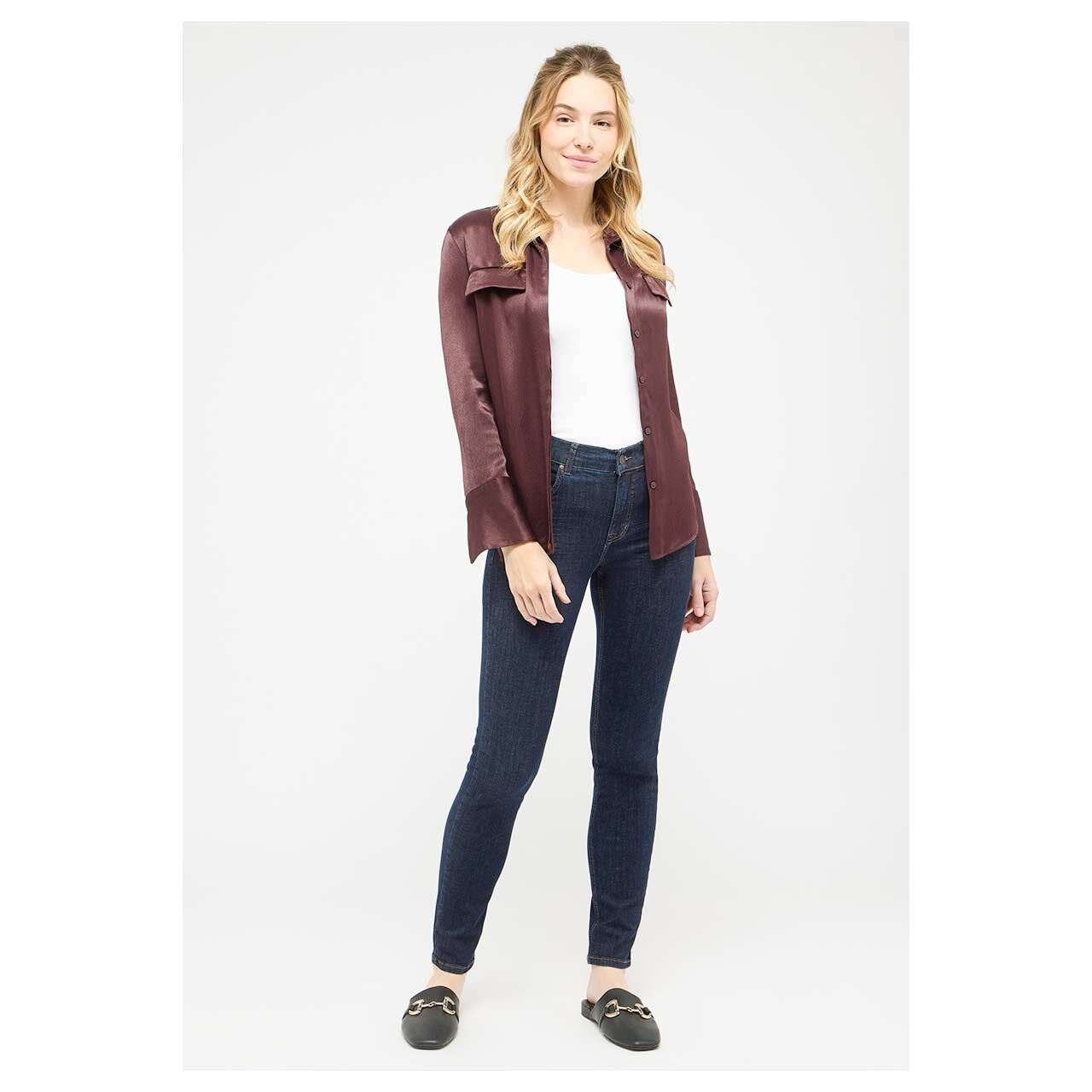 Eine Röhrenjeans, wie sie sich viele Frauen wünschen: Die Angels Skinny ist gleichmäßig gefärbt und mit dunkelbraunen Nähten versehen. Dazu passen das schmale Lederlabel am mittelhohen Bund sowie die Nieten und der Knopf im Used-Look wunderbar! Die Basicjeans mit Ultra-Power-Stretch setzt zum Beispiel ein farbenfrohes Oberteil super in Szene.