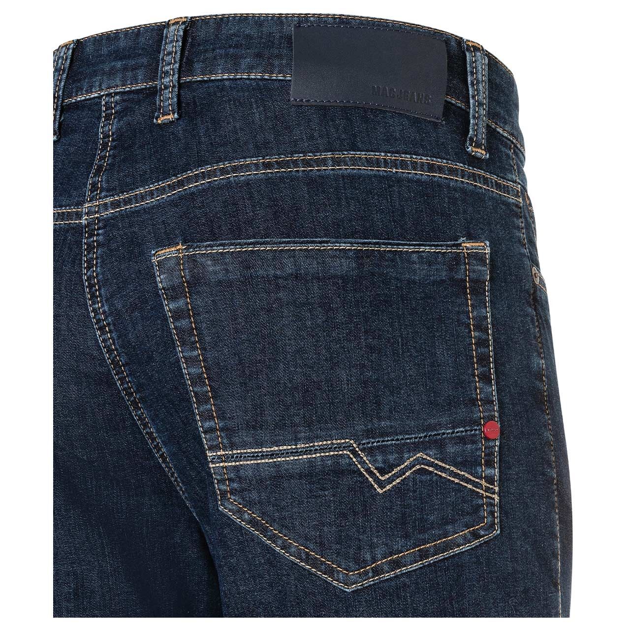 Jeanslook pur! Zweifarbige Nähte in einem kräftigen Braun und hellen Cremeweiß durchziehen vom Bund bis zum Saum das tiefe Blau dieser MAC Arne Pipe und verleihen ihr eine zeitlose Optik. Dank des angenehmen Materials verspricht die Herrenjeans zusätzlich einen hohen Tragekomfort.
