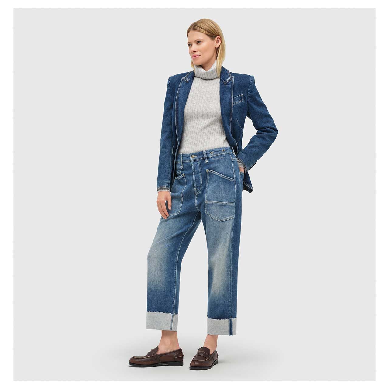 Stretch Damen Ankle Jeans Baggy in Blau verwaschen
