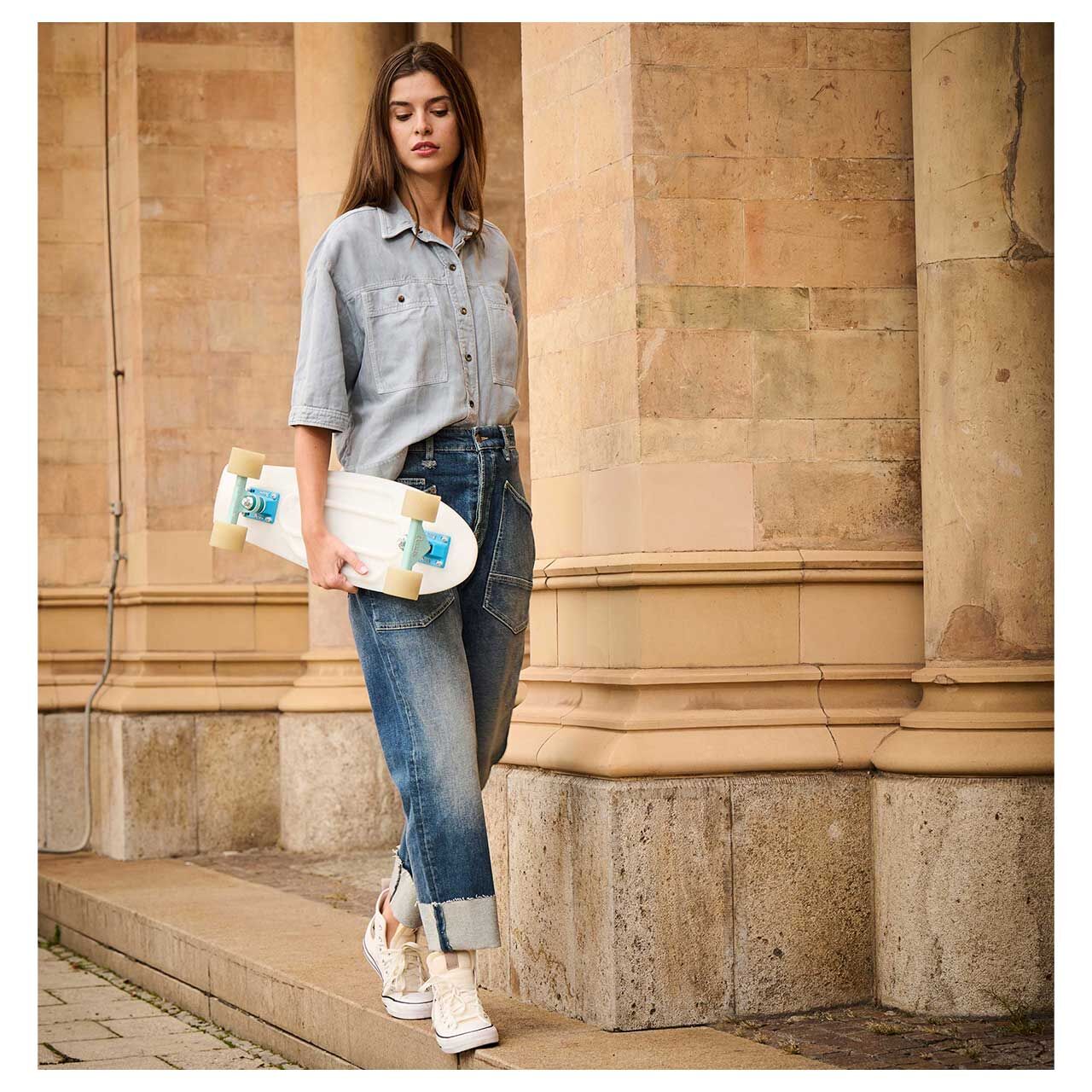 - Loose Fit: keilförmiges Bein / niedriger Bund