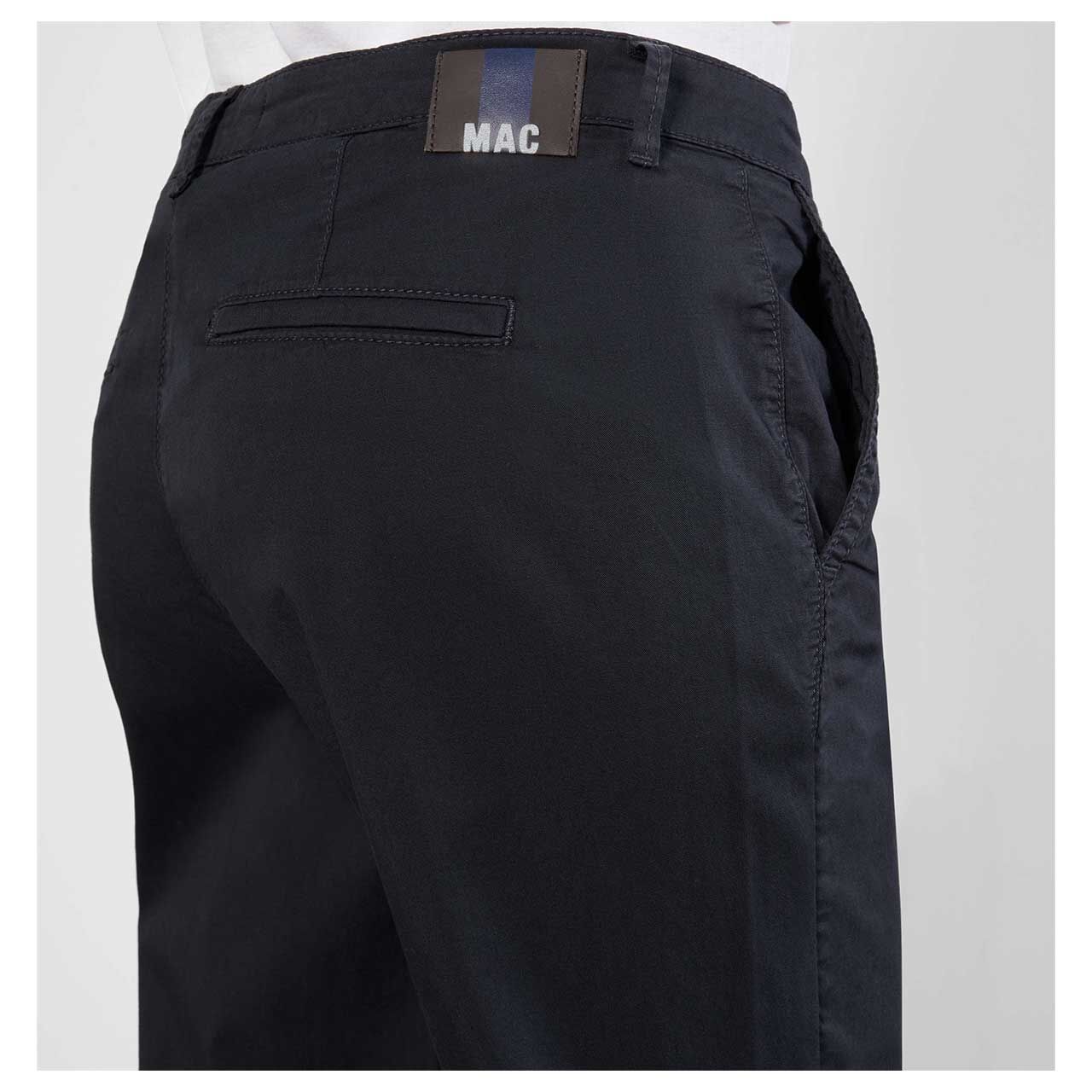 Lässige Eleganz! Die MAC Chino ist die ideale Baumwollhose, wenn Sie es vornehm und leger gleichzeitig mögen. Monochrome Nähte verleihen dem Dunkelblau noch mehr Souveränität, während ein silberner Verschlussknopf sowie ein raffiniertes Lederpatch am Bund den klassischen Chinolook gekonnt auflockern. Die leichte Materialqualiät sorgt außerdem für ein tolles Tragegefühl.