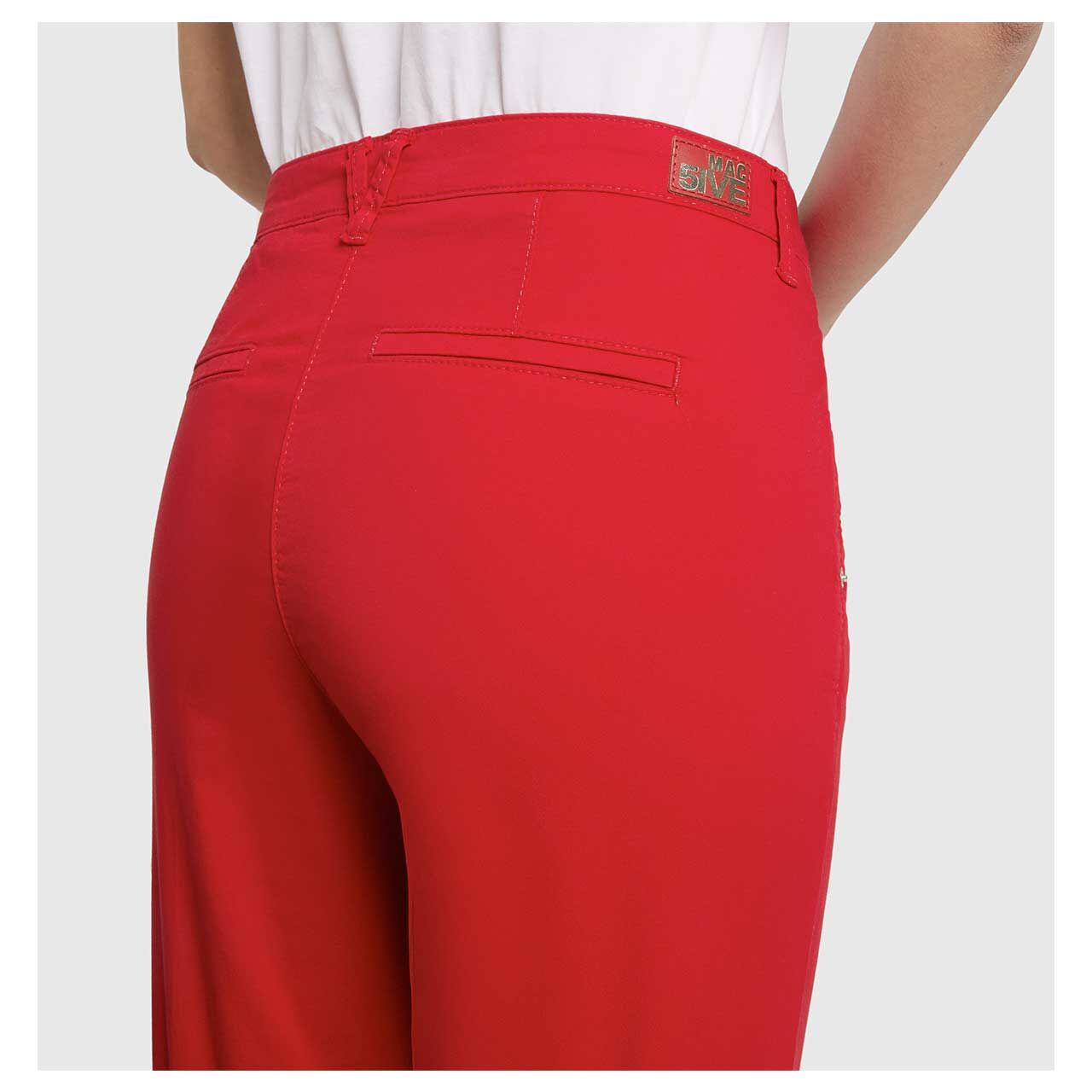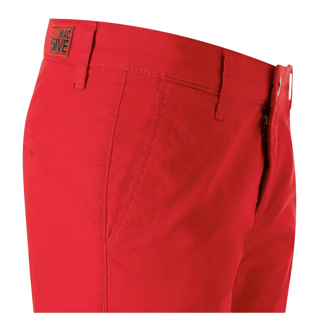 Bereit für einen knalligen Farbakzent? In der roten MAC Chino setzen Sie ganz bewusst ein stilvolles Statement! Die kräftige Farbe wird durch monochrome Nähte sowie den dezent glänzenden Knopf elegant ergänzt. Angedeutete, paspelierte Gesäßtaschen unterstreichen den cleanen Look dieser Damenhose. Dank praktischer Turn-up-Funktion können Sie das Modell flexibel tragen.