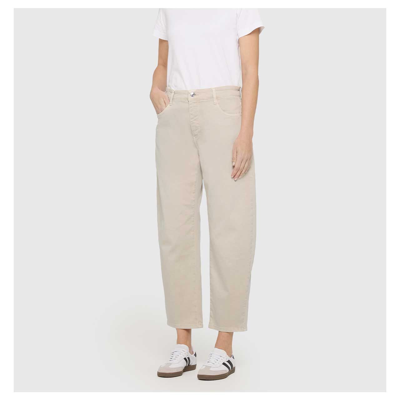 Locker im Schnitt, modern im Auftritt - Die MAC Jeans Danni 2.3 zeigt sich in Beige mit angesagter Silhouette und bringt frische Dynamik in den Look. Die verkürzte Länge unterstreicht den lässigen Stil, während der Denim mit Elasthan für Komfort und Beweglichkeit sorgt. Kombiniert mit schmalen Oberteilen wirkt die Damenjeans besonders stylish!