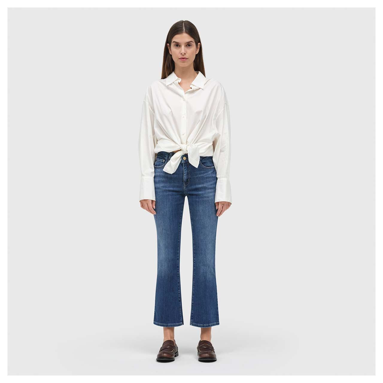 Der Bootcut Fit, der bereits bei einer 7/8-Länge endet! Die MAC Dream Kick begeistert mit einem topmodernen Schnitt und einem innovativen, stretchigen Material. Um den Schnitt der Damenjeans in den Vordergrund zu stellen, bleiben Farbe und Details zurückhaltend.