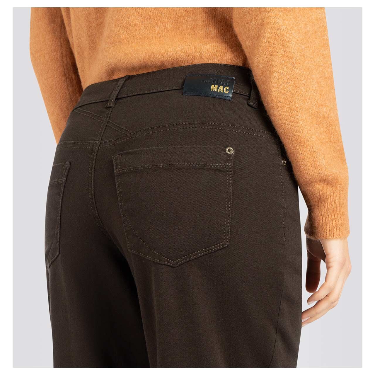 Mit einem tiefen Braunton zählt die MAC Gracia zu den Basics in Ihrem Kleiderschrank. Eine dezente, schräg angebrachte Naht macht die Münztasche zu einem kleinen Hingucker. Ansonsten punktet die Damenjeans mit einem schlichten Design.