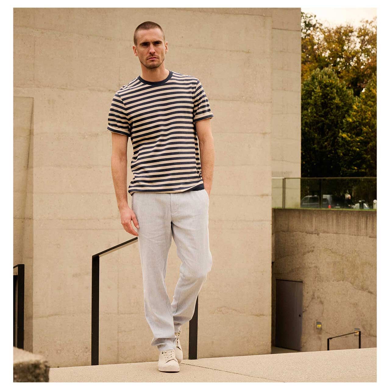 - Zusammensetzung: 47% Leinen, 34% Polyester, 17% Viskose und 2% Elasthan