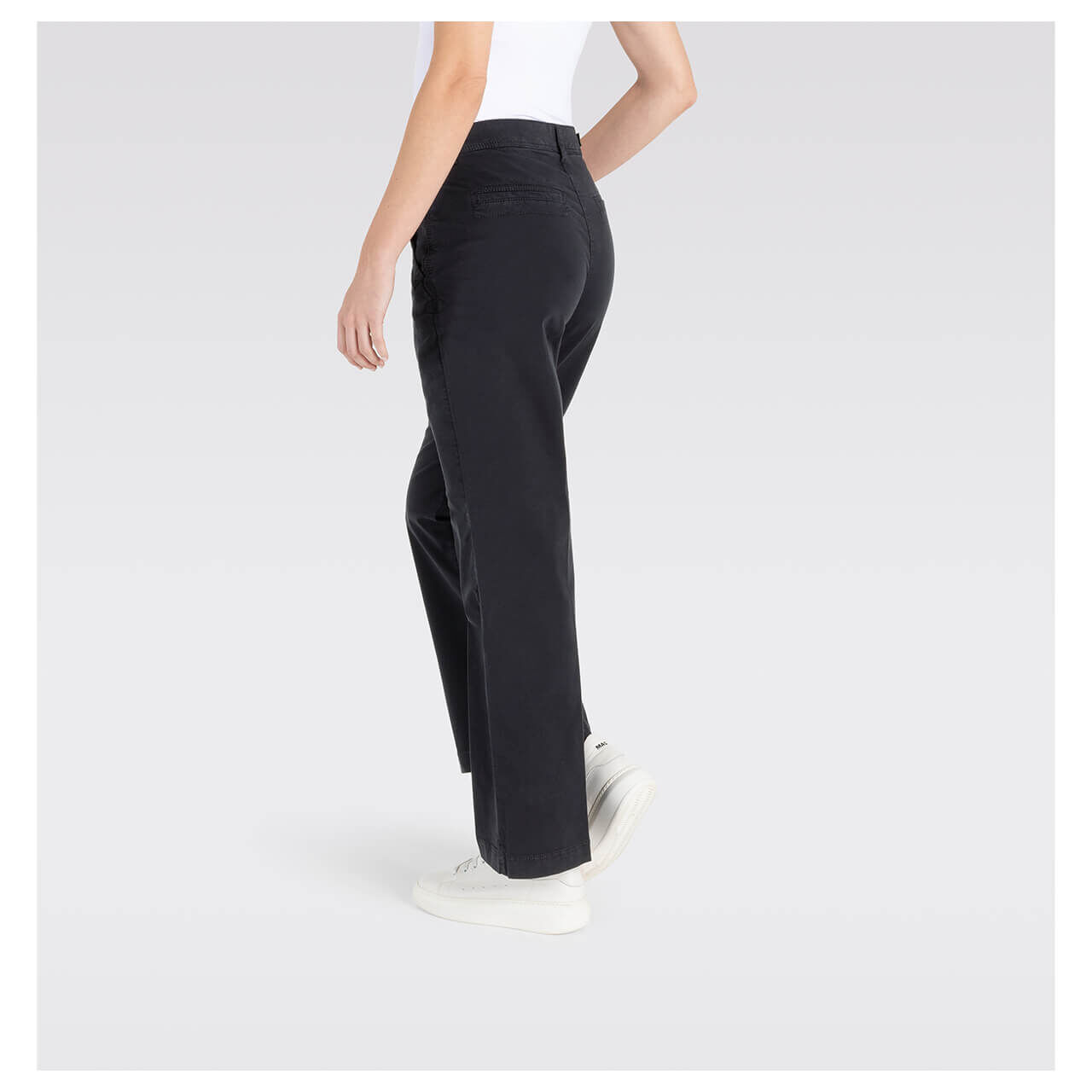 Almost black! Die Nora von MAC Jeans kommt in einem Dunkelblau daher - beinahe Schwarz - daher. Die elegante Damenhose hat aber noch mehr zu bieten: Mit einem geraden, weiten Bein wandelt sie den typischen Chinolook etwas ab. Das sieht nicht nur toll aus, sondern sorgt - neben dem leichten Baumwollmix - auch für einen hohen Tragekomfort.