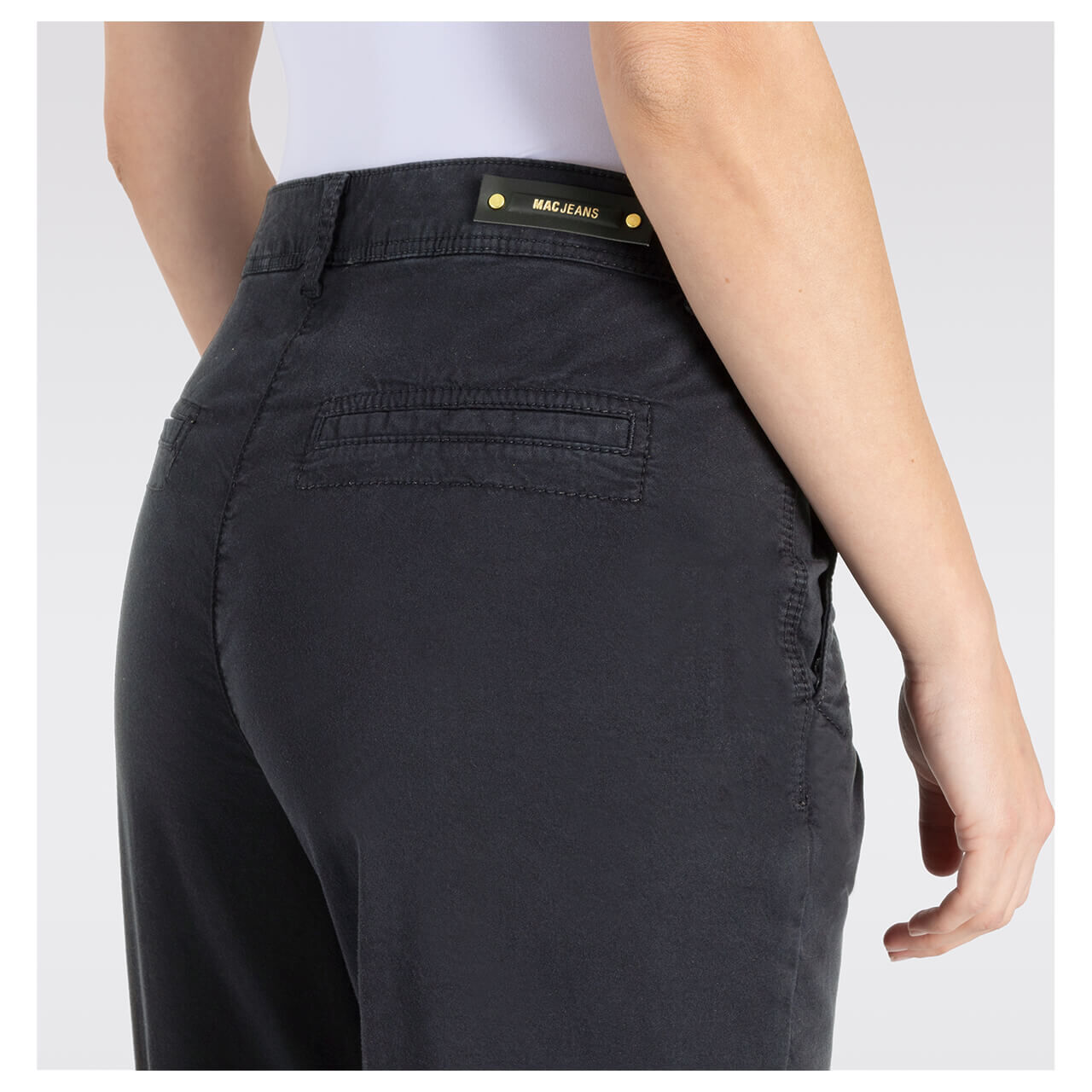 - Beschreibung Stretch Damen Chinohose Nora Cotton in Dunkelblau Almost black! Die Nora von MAC Jeans kommt in einem Dunkelblau daher - beinahe Schwarz - daher. Die elegante Damenhose hat aber noch mehr zu bie… Mehr